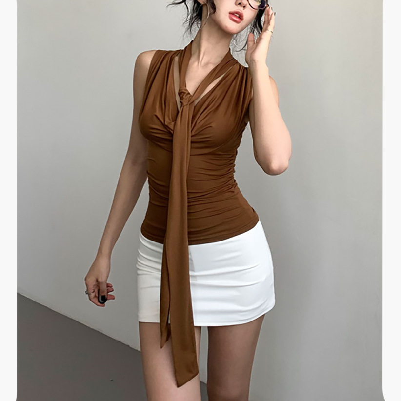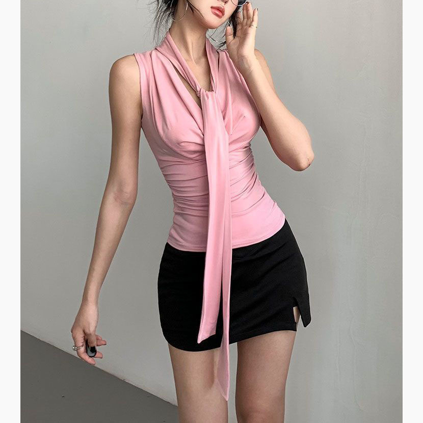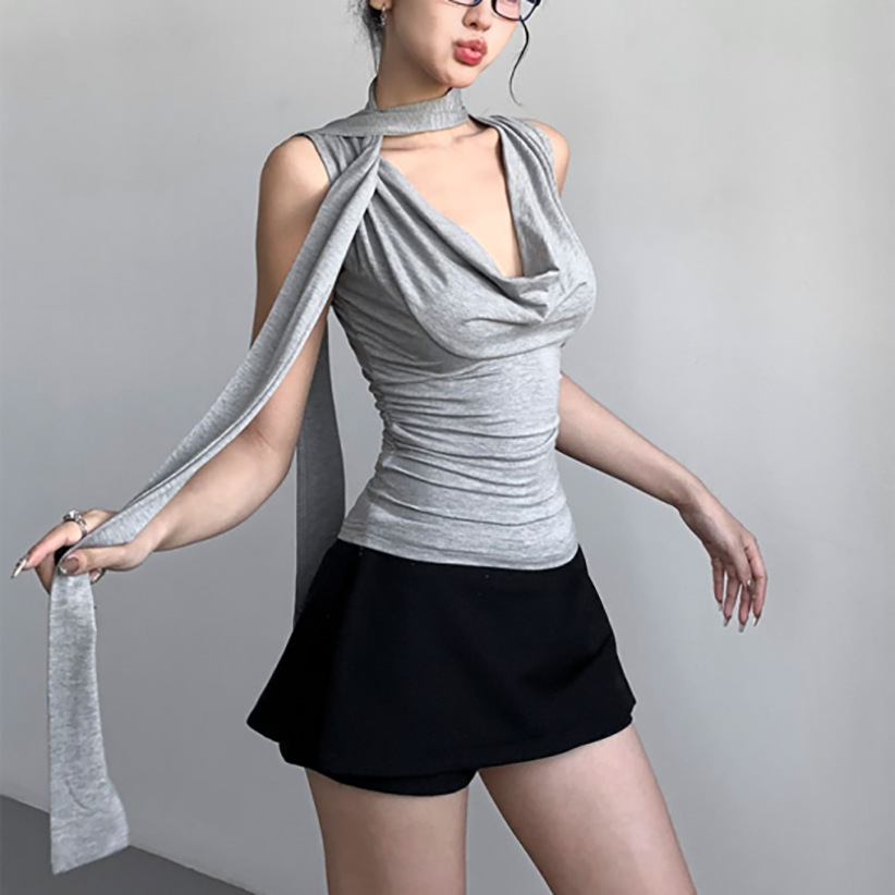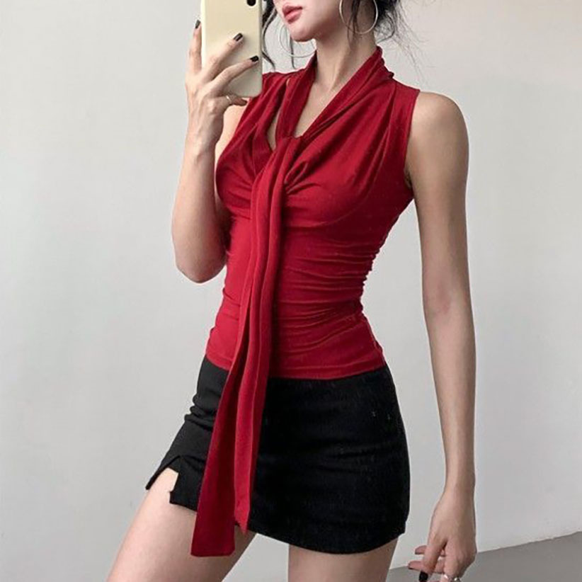 泰国东南亚挂脖夏荡领小吊带背心女打底衫无袖上衣短款潮流百搭