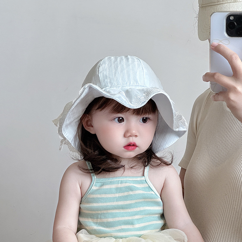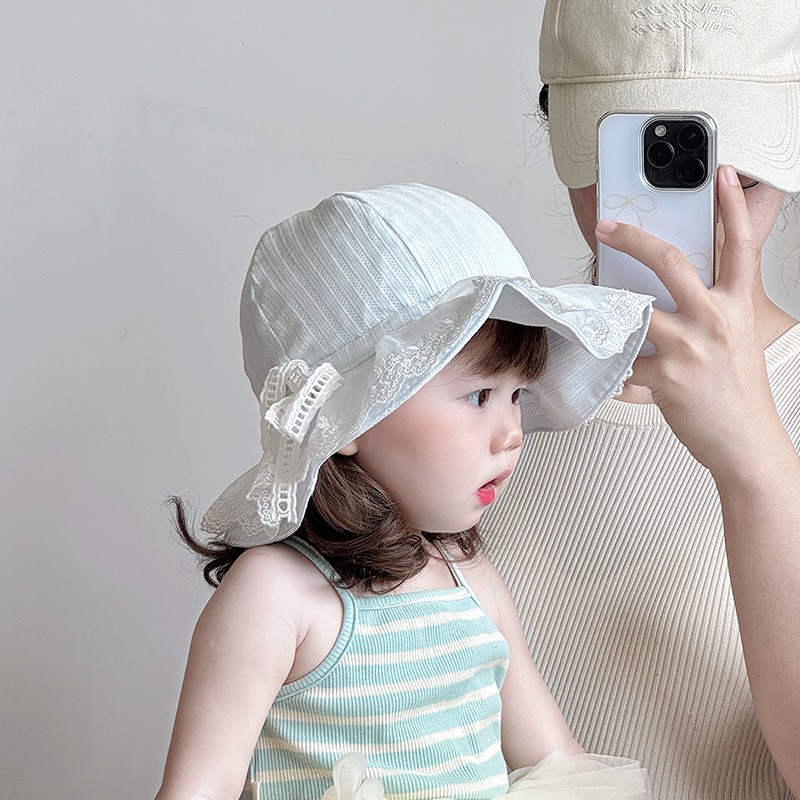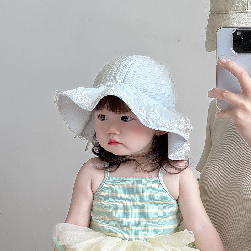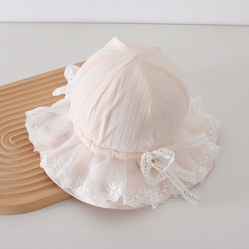宝宝帽子春夏款渔夫帽韩版洋气蕾丝公主帽婴幼儿遮阳帽防晒帽