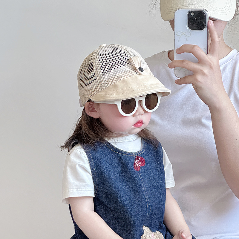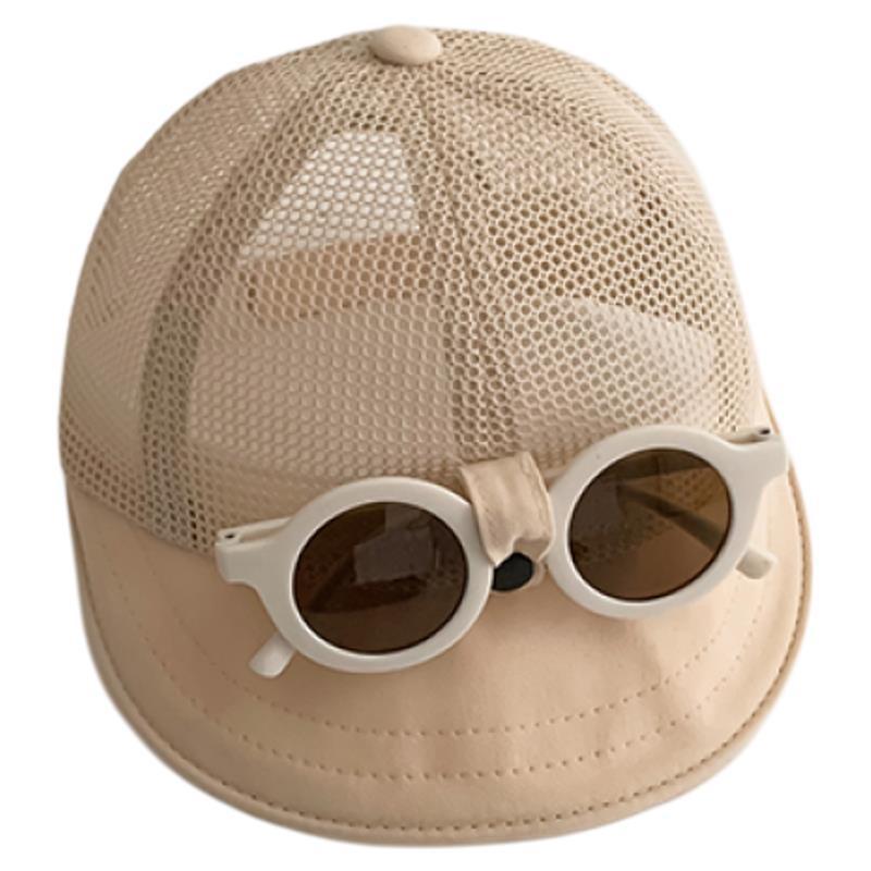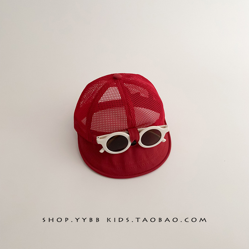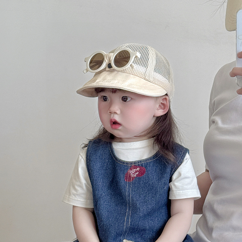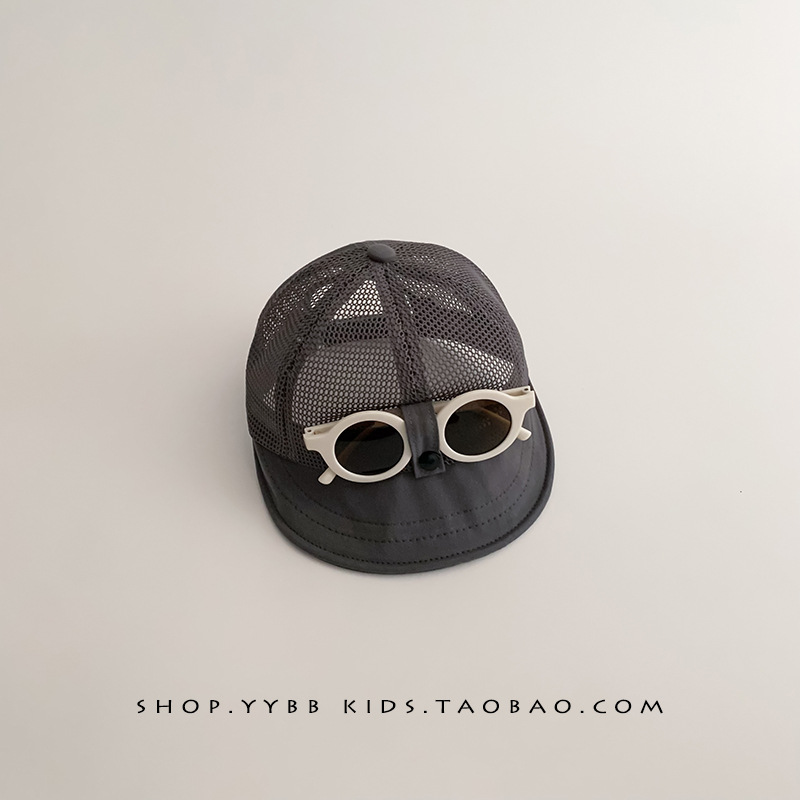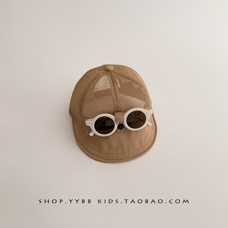 儿童帽子夏季薄款透气鸭舌网帽男女宝宝遮阳防紫外线带墨镜棒球帽