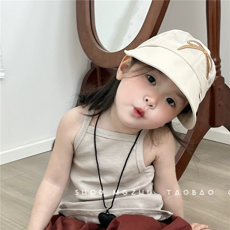 芭蕾风蝴蝶结速干儿童遮阳帽春夏薄款韩系女童宝宝遮阳防晒太阳帽