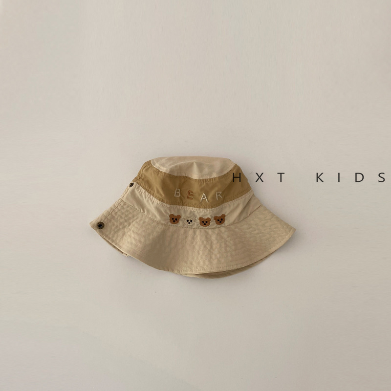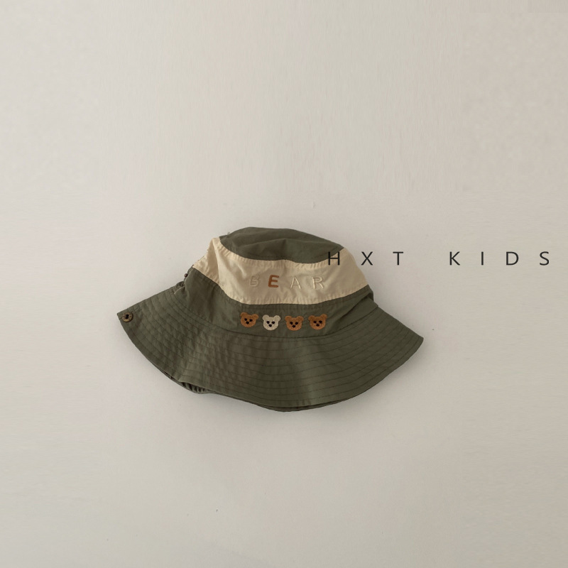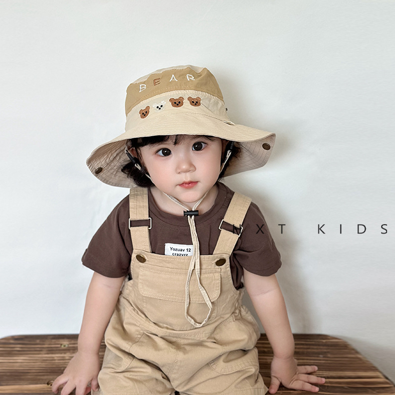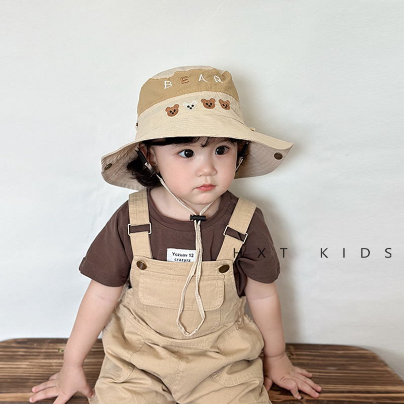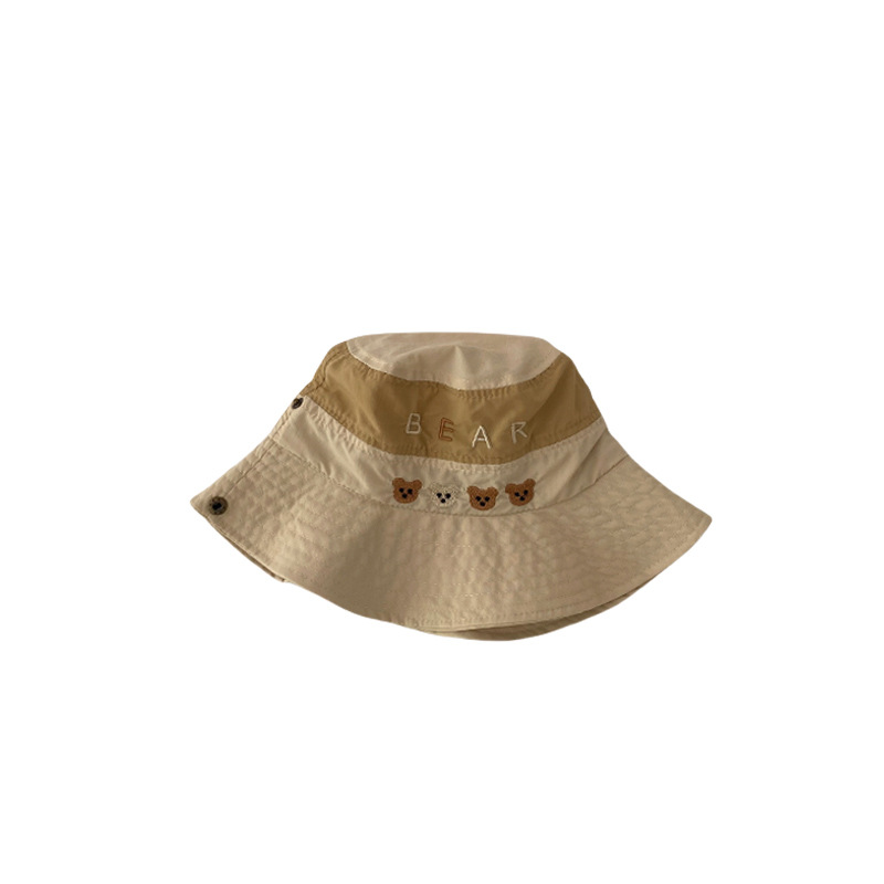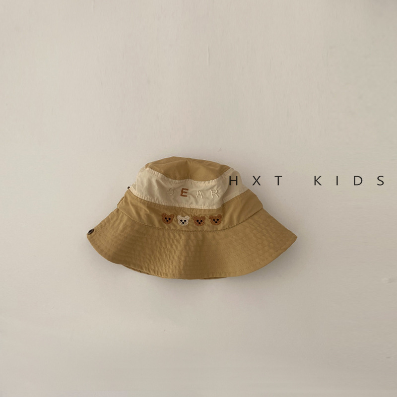 儿童防晒帽夏季薄款拼色小熊刺绣大帽檐遮阳帽子宝宝户外登山帽春