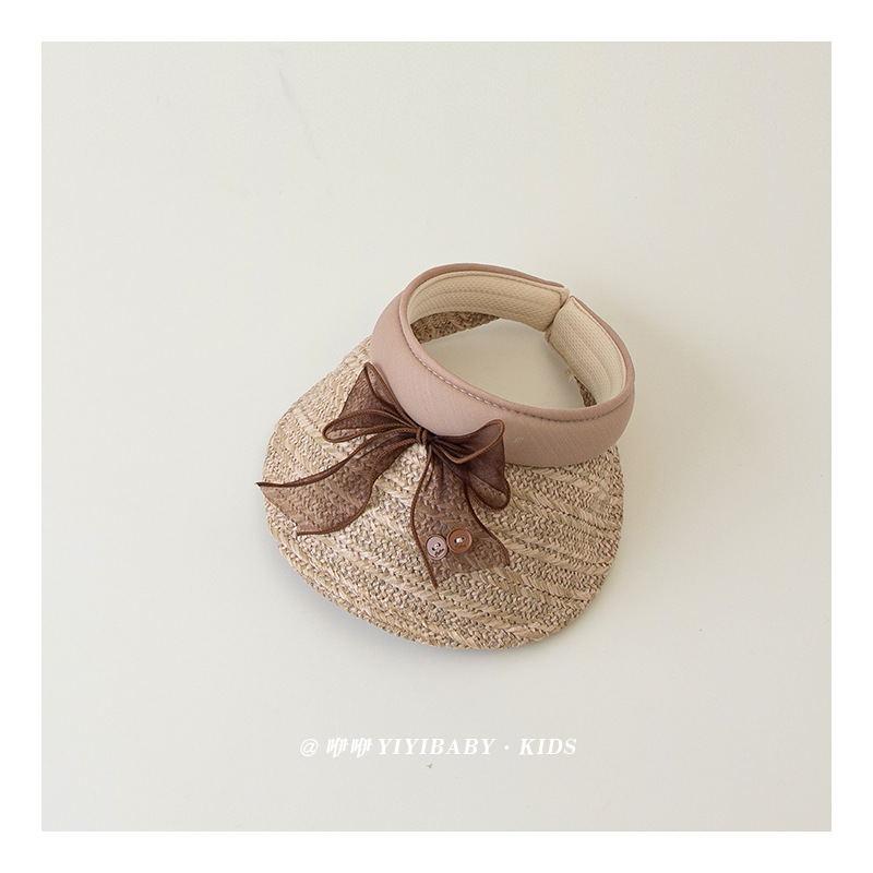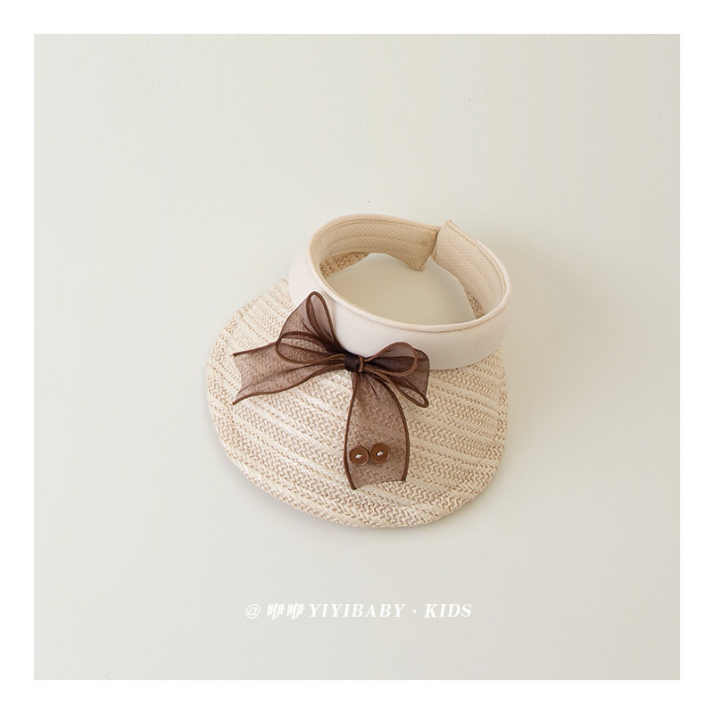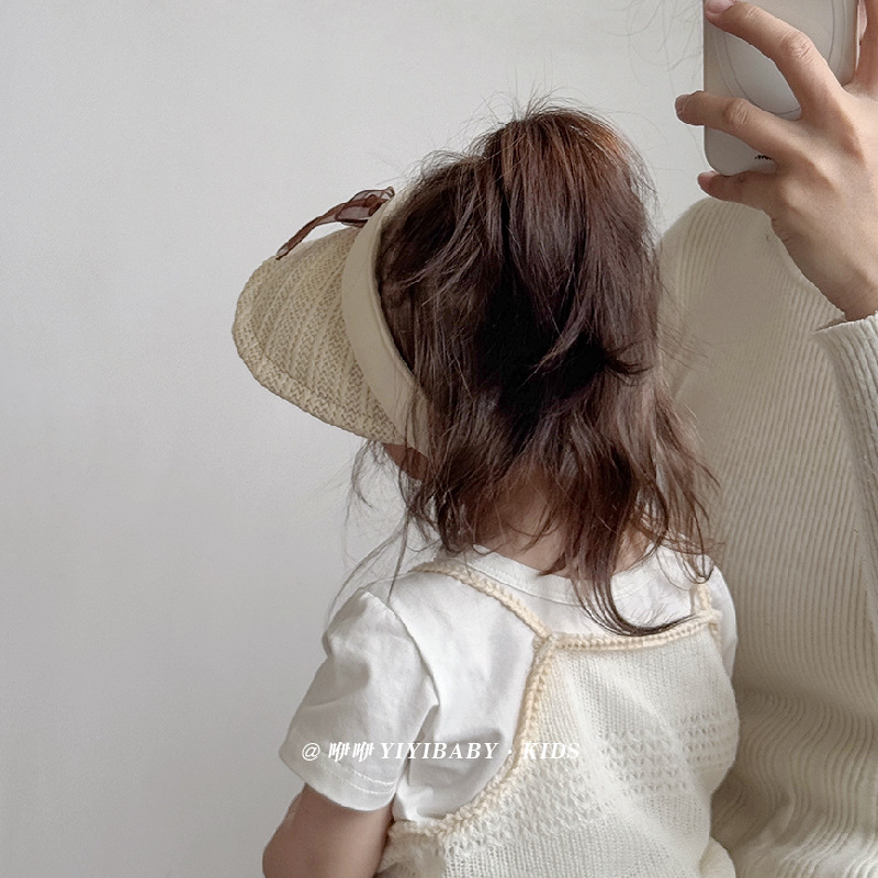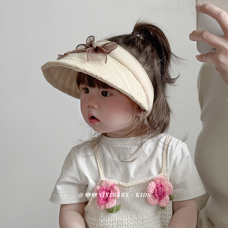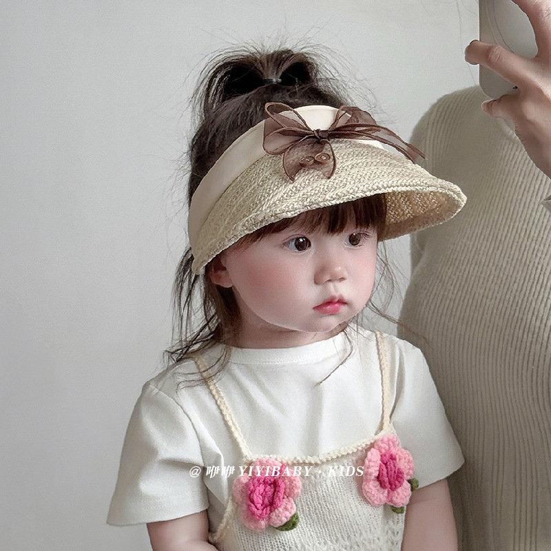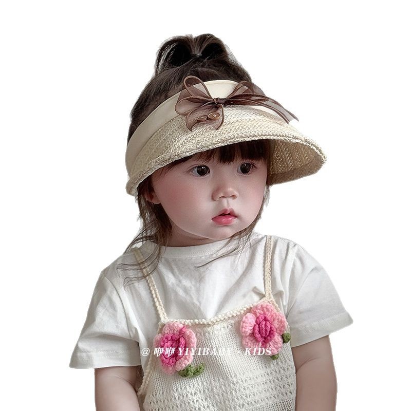 儿童空顶遮阳草帽夏季韩系大檐洋气蝴蝶结女童宝宝出游沙滩太阳帽