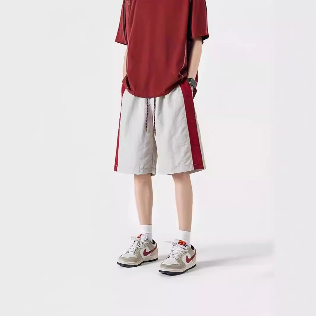 美式复古冰丝速干短裤男生夏季薄款凉快炸街帅气撞色设计感五分裤