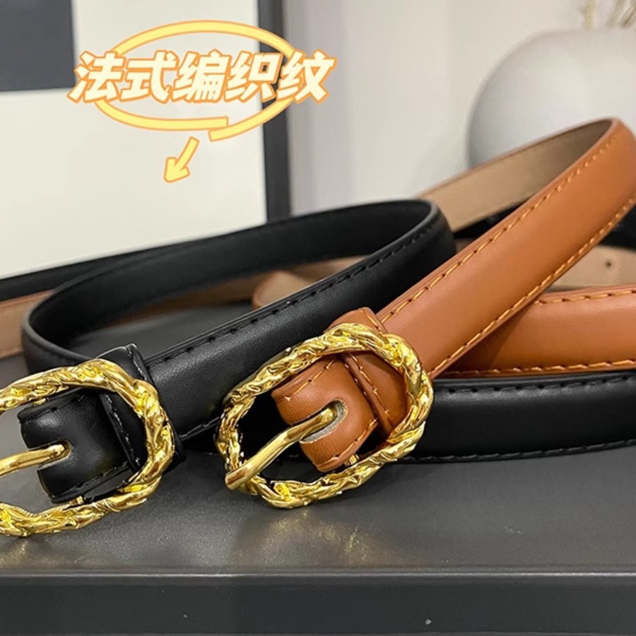 复古百搭金色扣经典法式金色方形编织纹日字扣细腰带皮带装饰裤