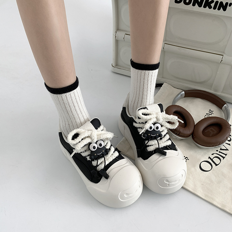 圆头厚底增高配裙子韩系小白鞋女新款秋季轻便休闲运动鞋子