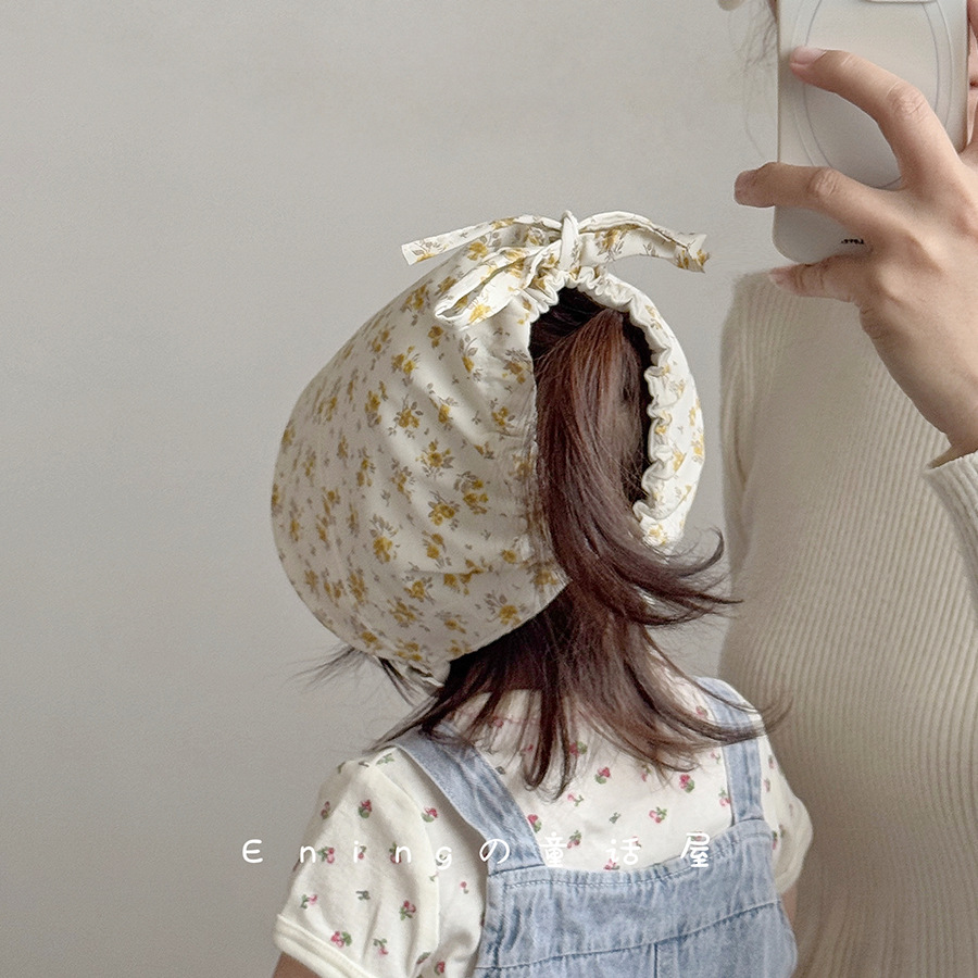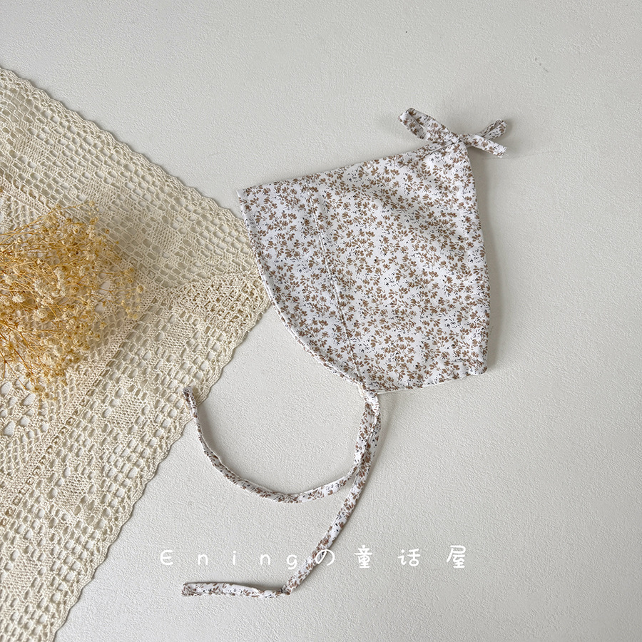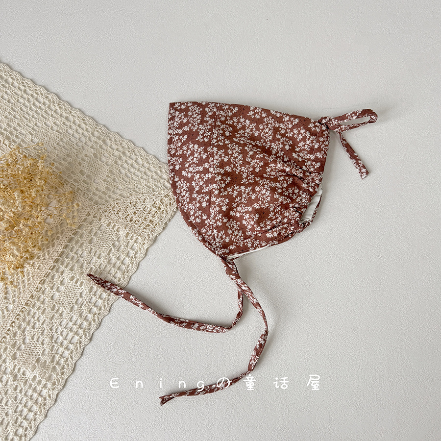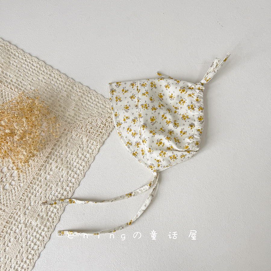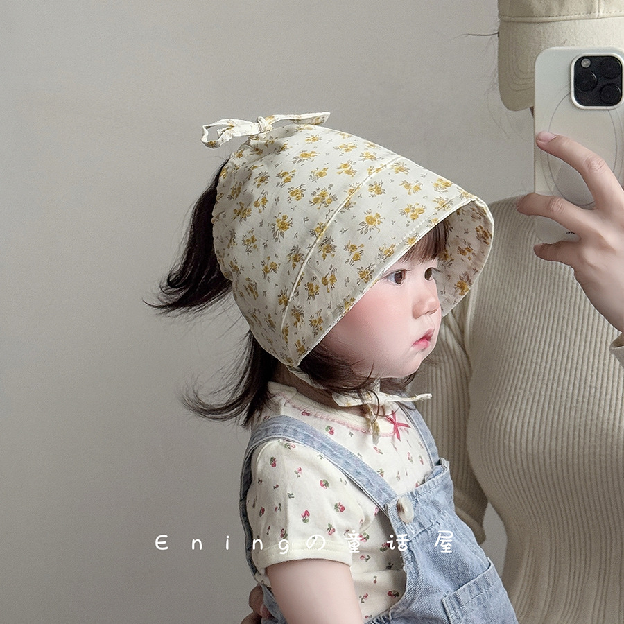 洋气碎花女宝宝帽子春夏季薄款女童空顶宫廷帽大檐防晒遮阳公主帽