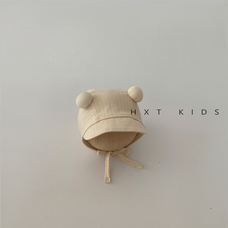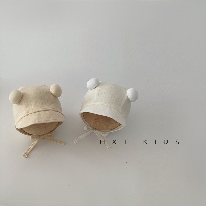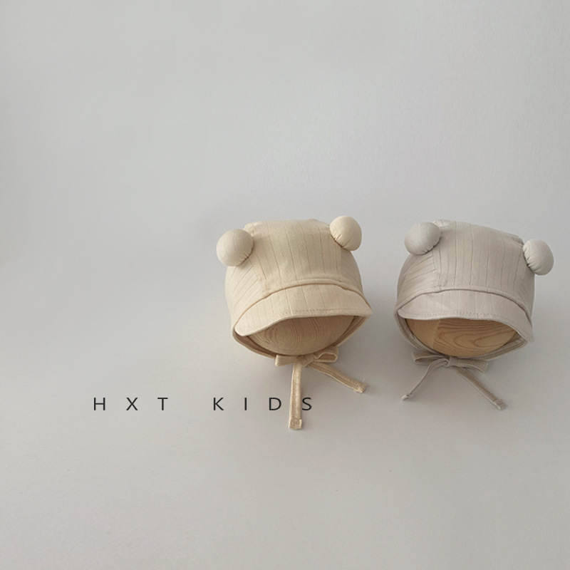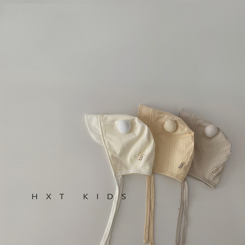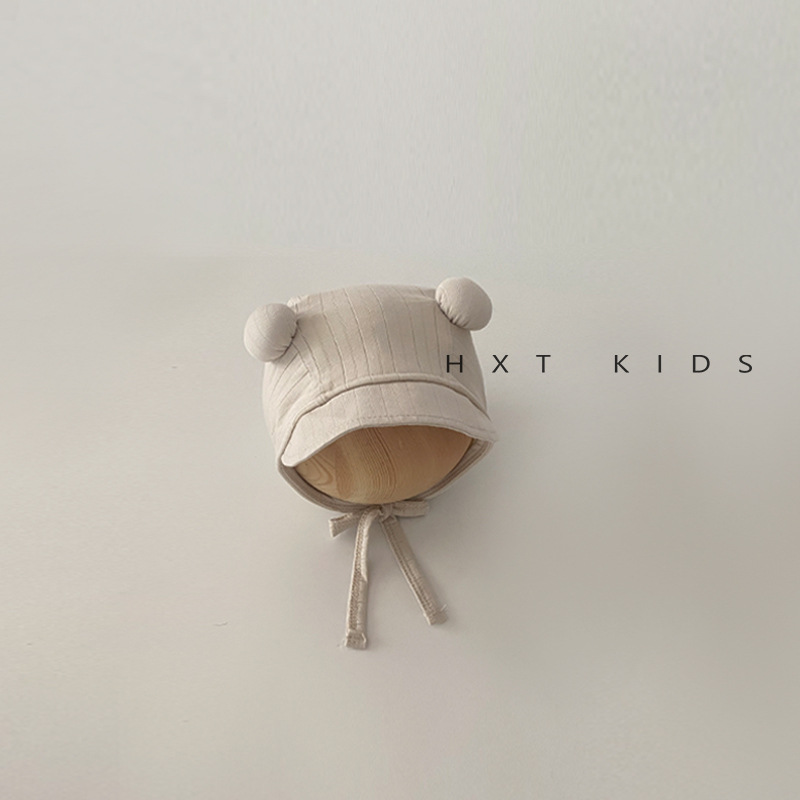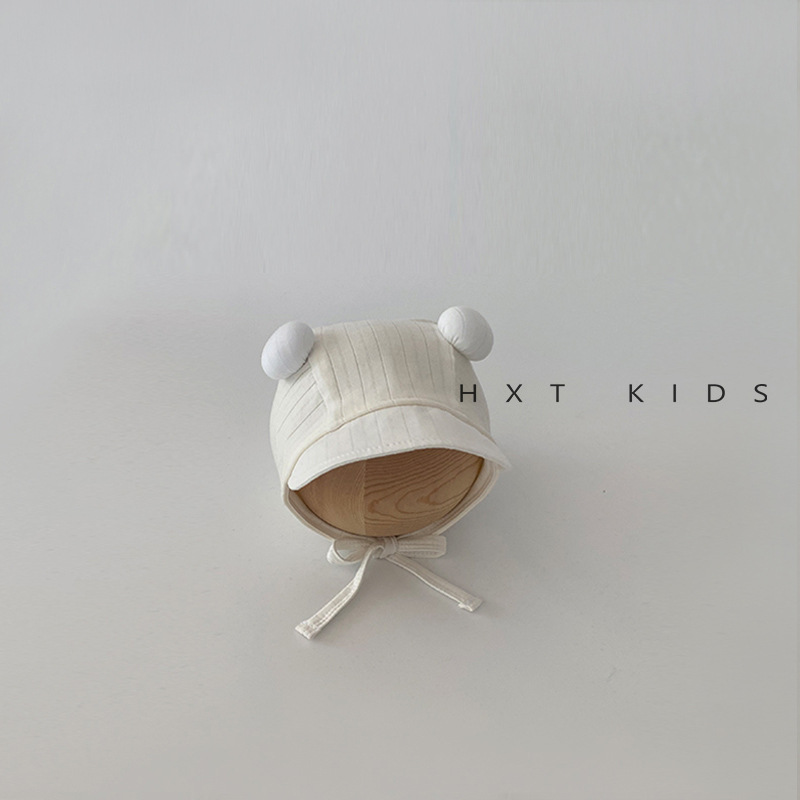 婴儿防晒帽春秋季可爱双球系带纯色宫廷帽小月龄宝宝夏天出游帽子