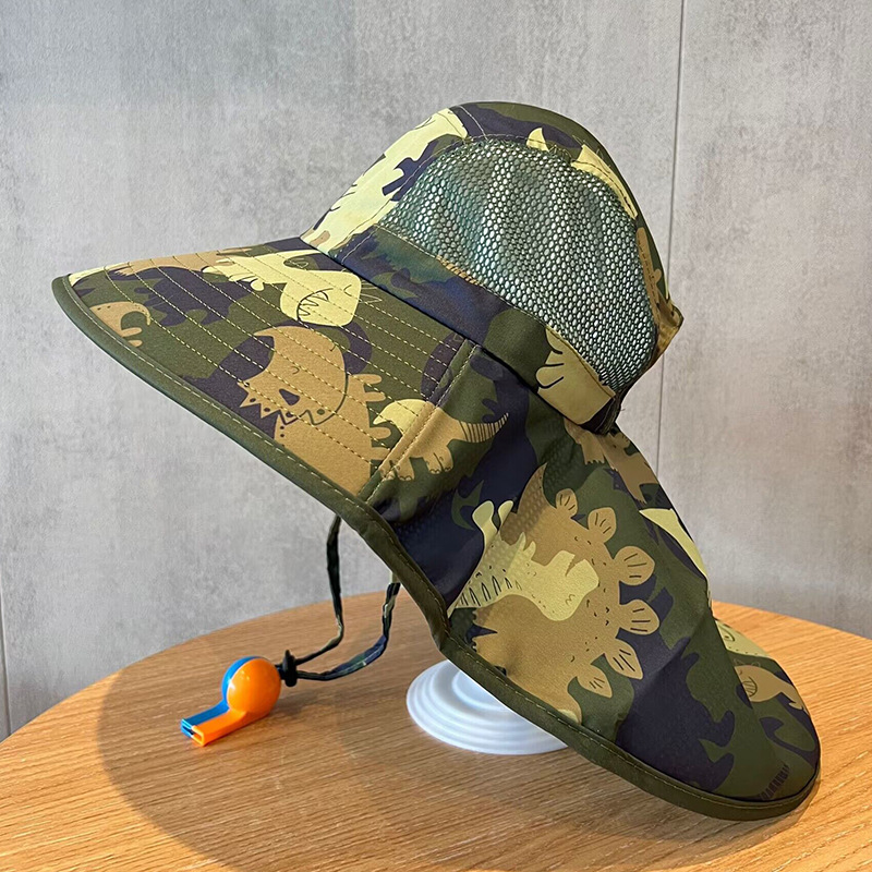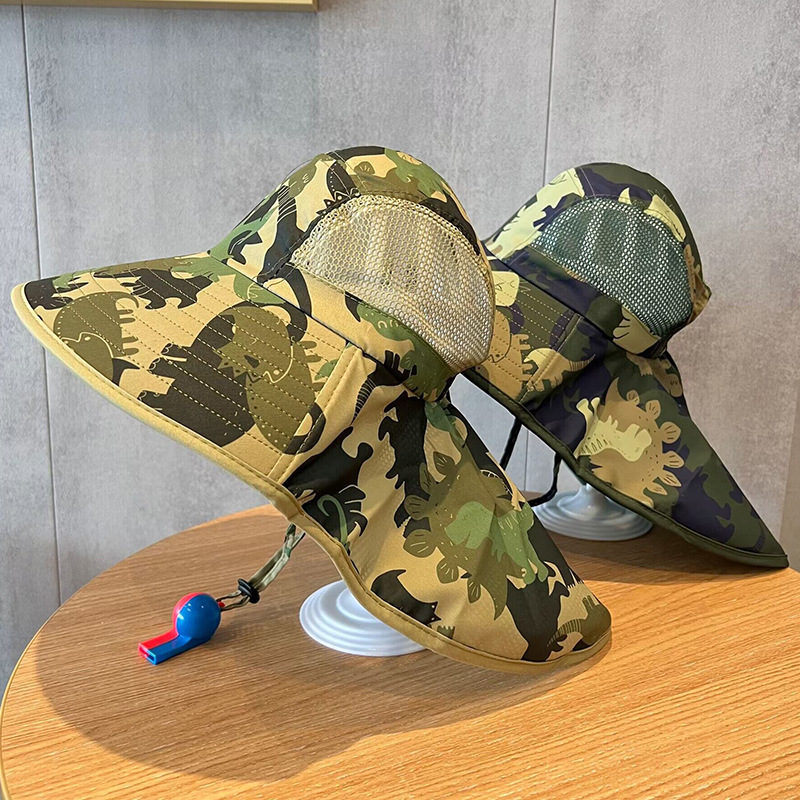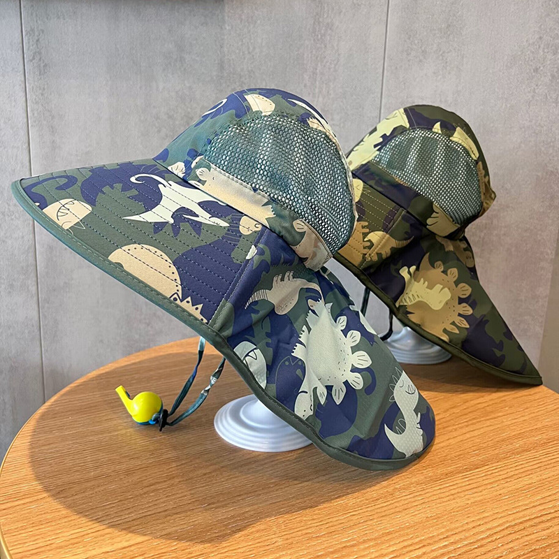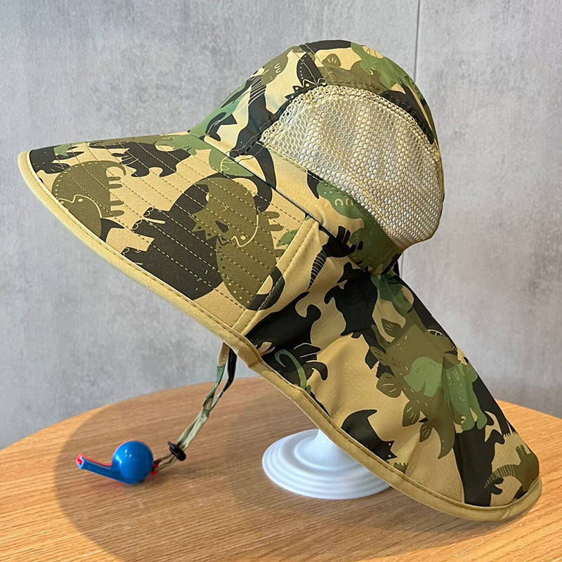 儿童帽子夏季大檐遮阳披肩帽男女童防紫外线渔夫帽宝宝防晒太阳帽