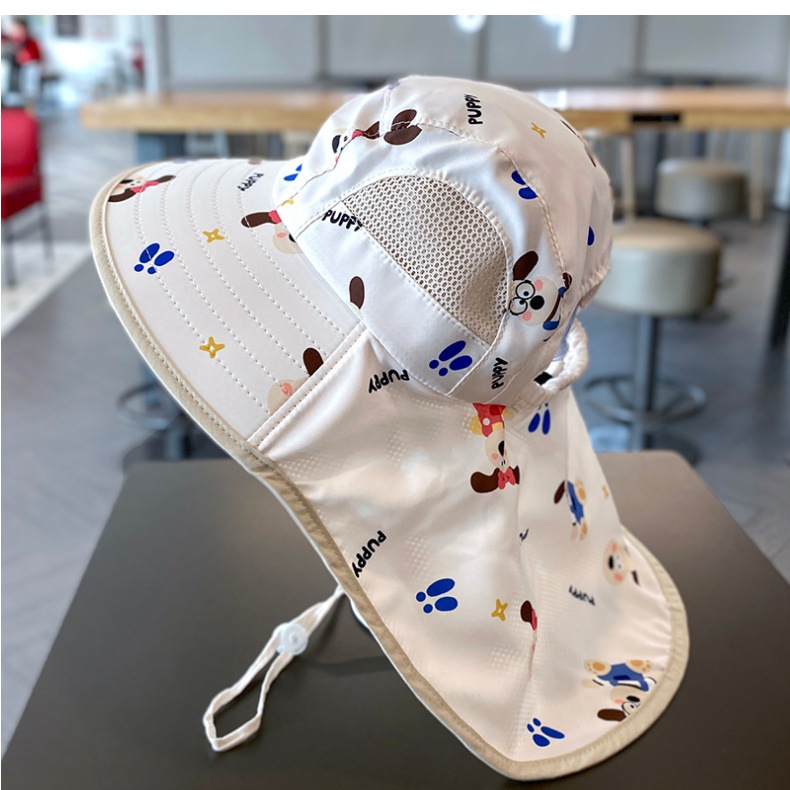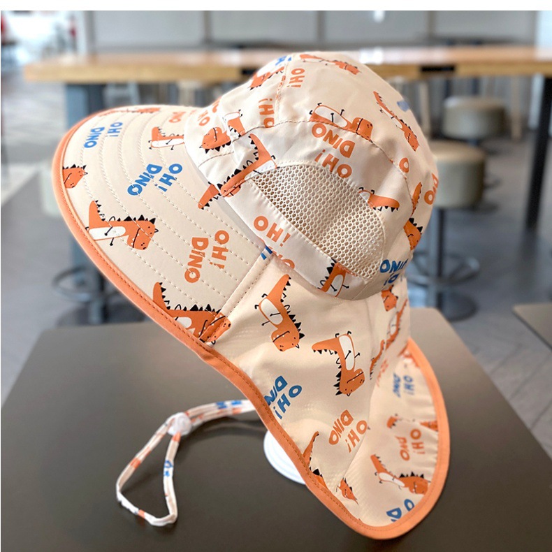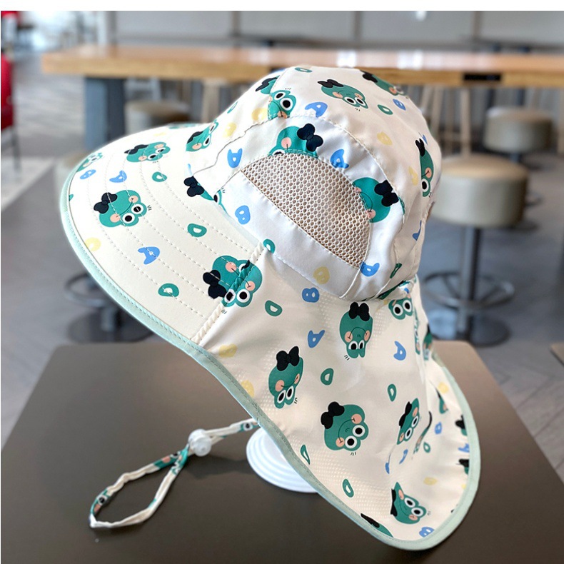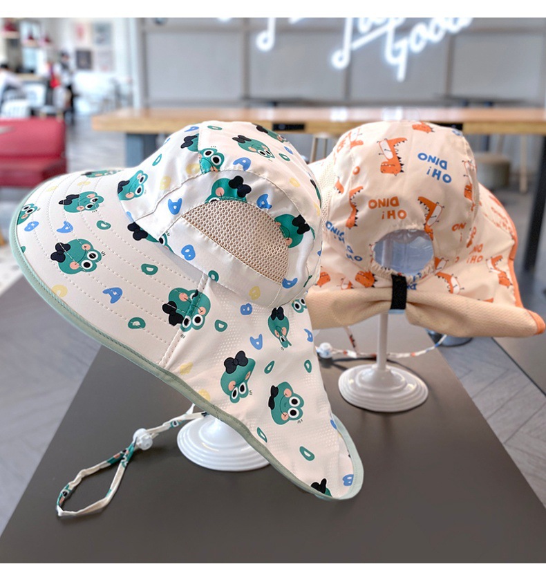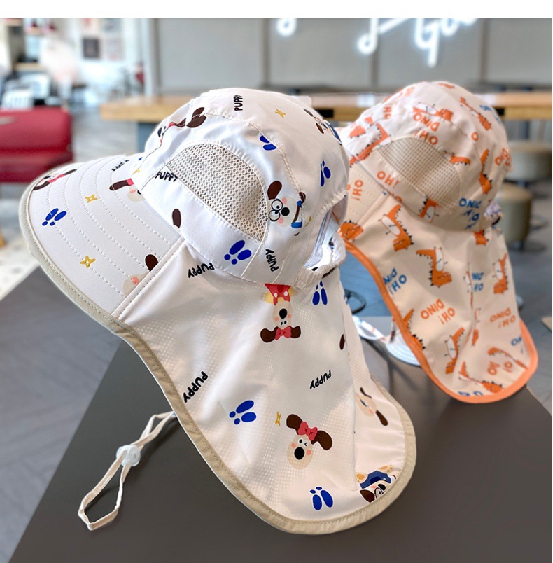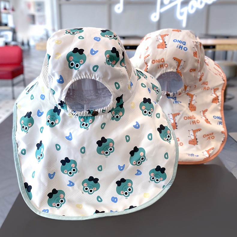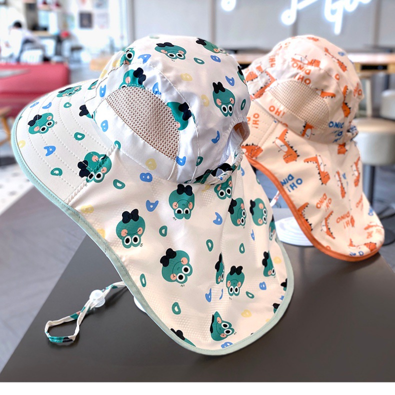 儿童防晒帽子夏季薄款大檐网眼披肩渔夫帽男女宝宝防紫外线太阳帽