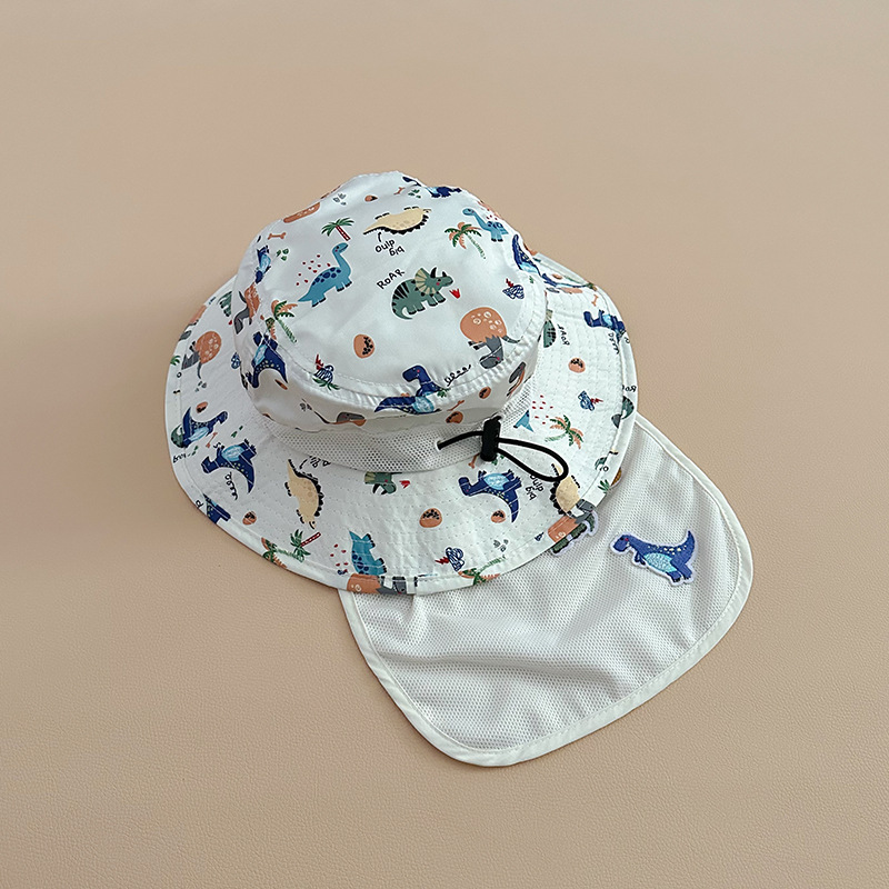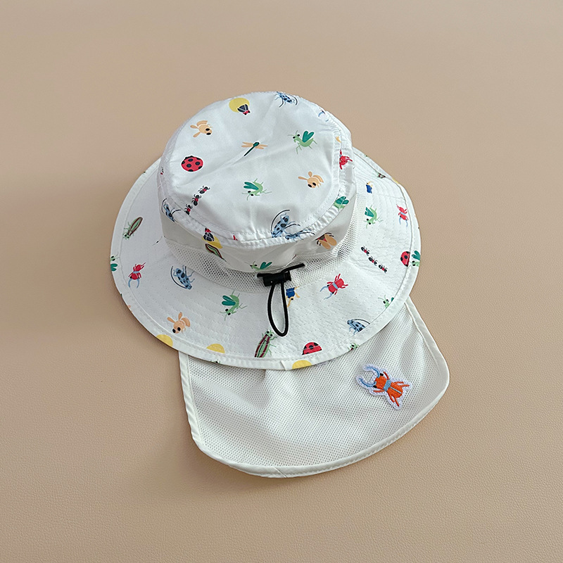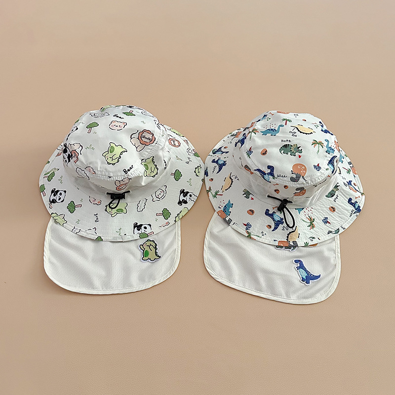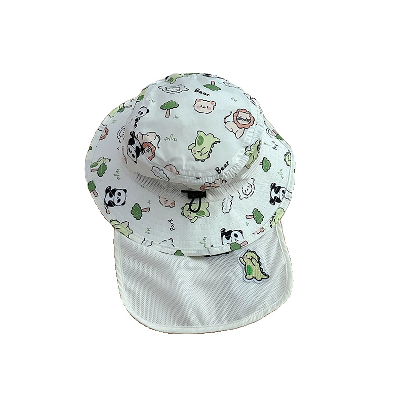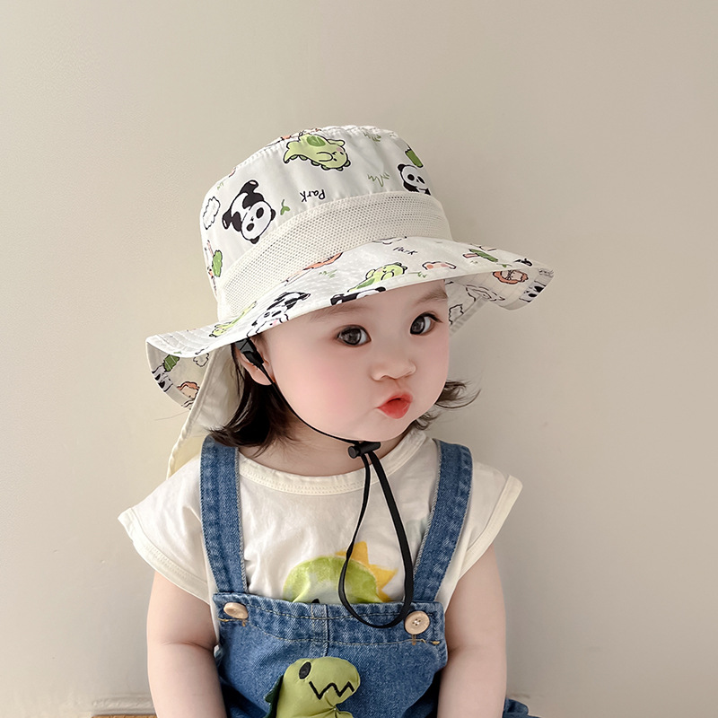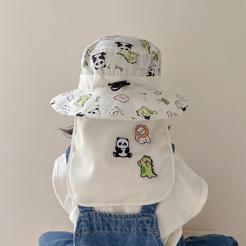 宝宝遮阳帽子春夏季薄款速干大檐可爱熊猫带披肩护脖男女儿童帽潮