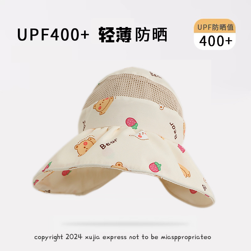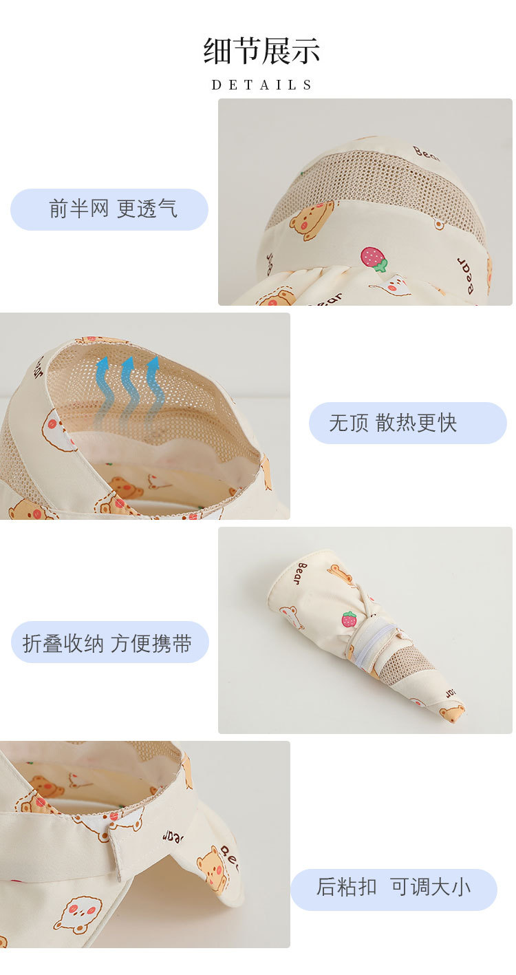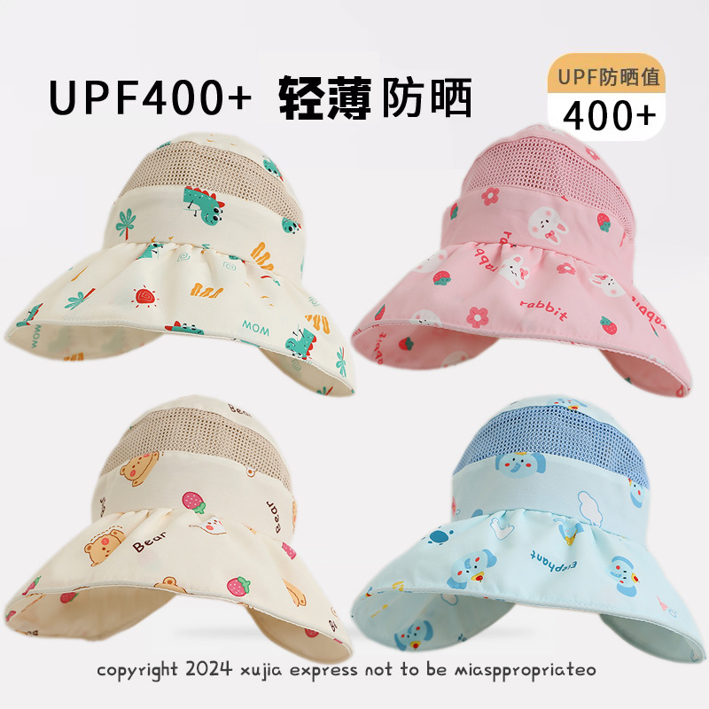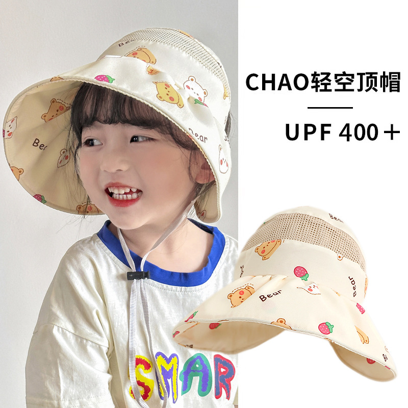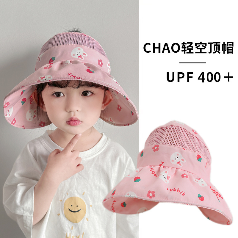 儿童帽子夏季薄款大檐可爱卡通防晒空顶帽男女宝宝出游太阳遮阳帽