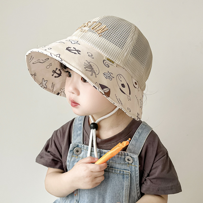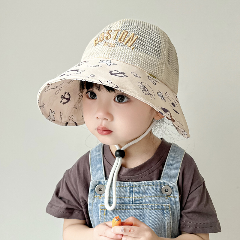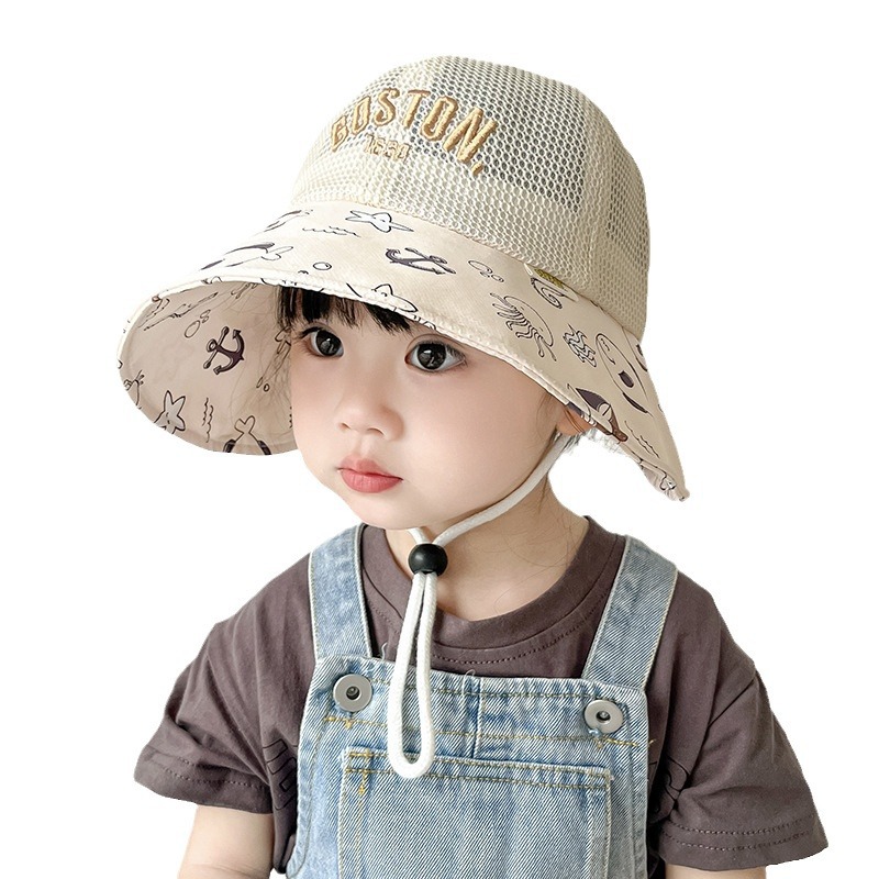 宝宝帽子春夏款婴儿遮阳帽儿童防晒帽大檐太阳网帽男童女童防晒帽