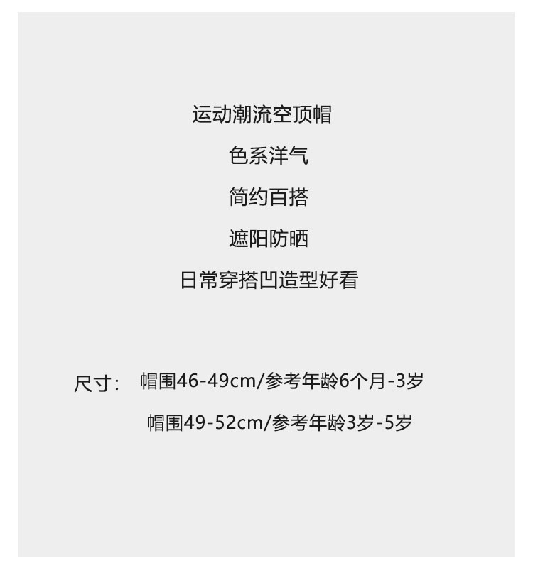 ins韩版儿童运动帽子夏季大檐防紫外线遮阳帽男女宝宝太阳空顶帽