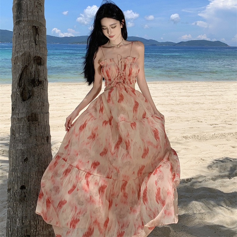 镂空蕾丝吊带连衣裙初恋奶系气质显瘦茶歇桔梗仙气云南度假连衣裙