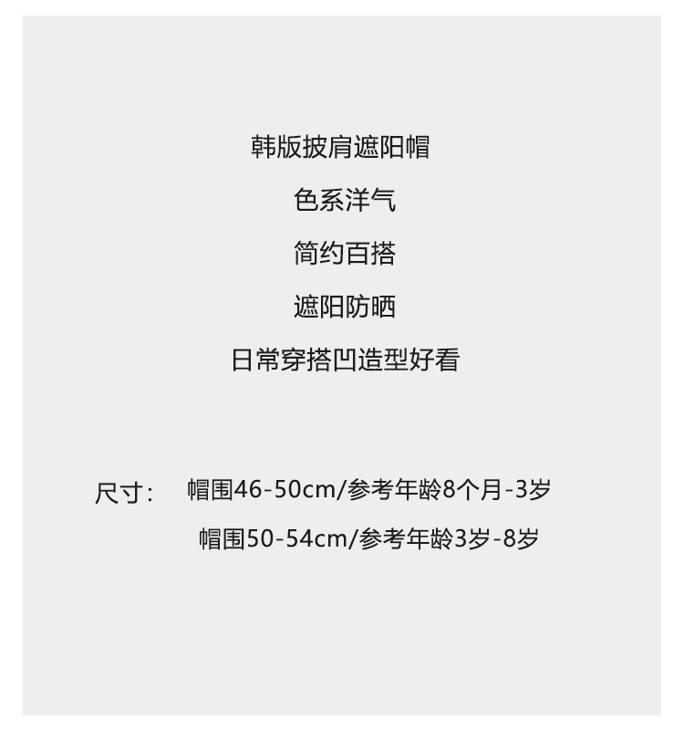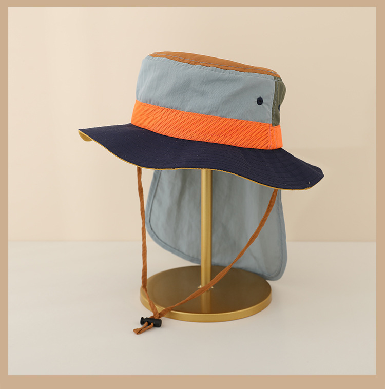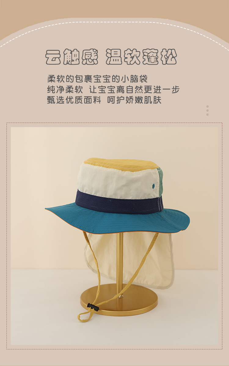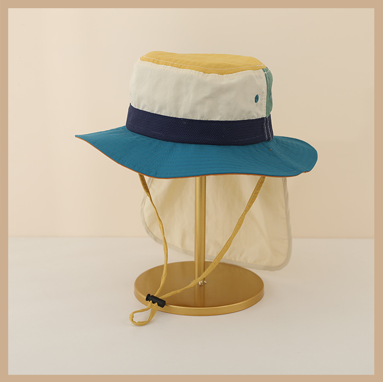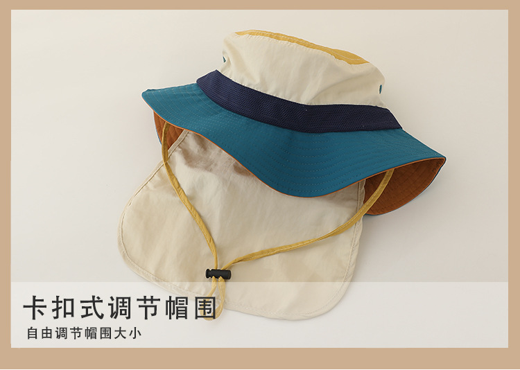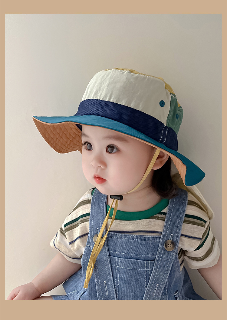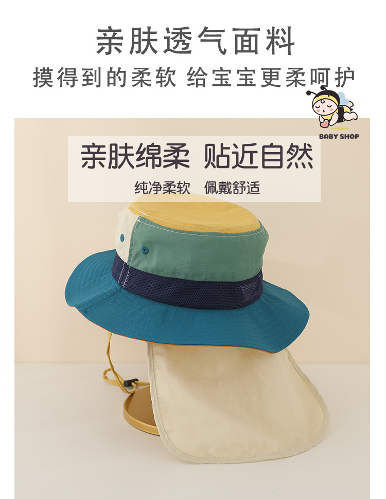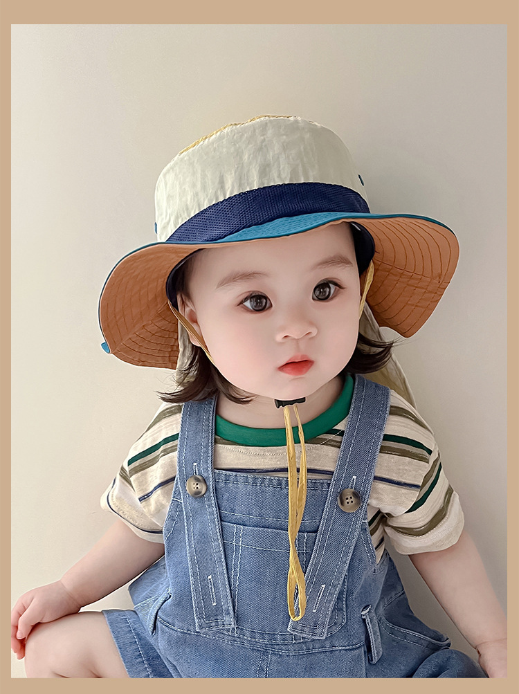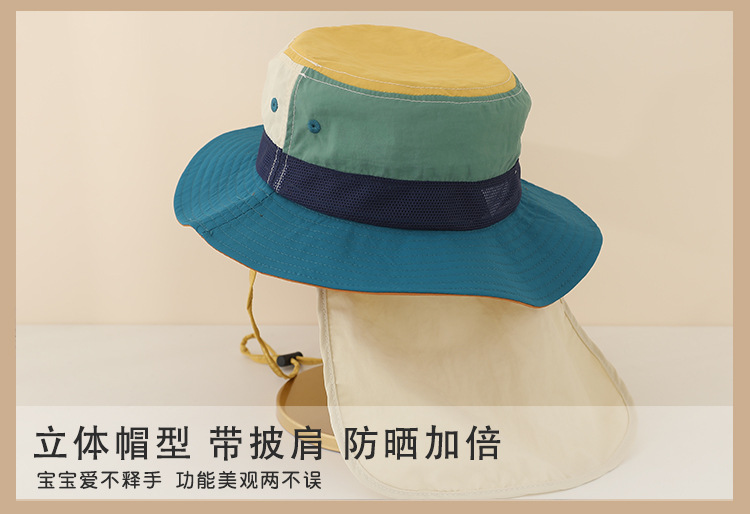 韩版拼色儿童防晒帽夏季薄款透气遮阳护脖帽男女宝宝出游渔夫帽潮
