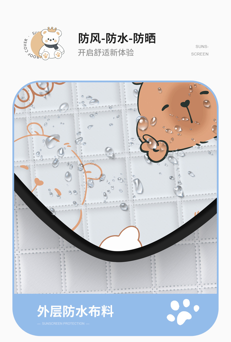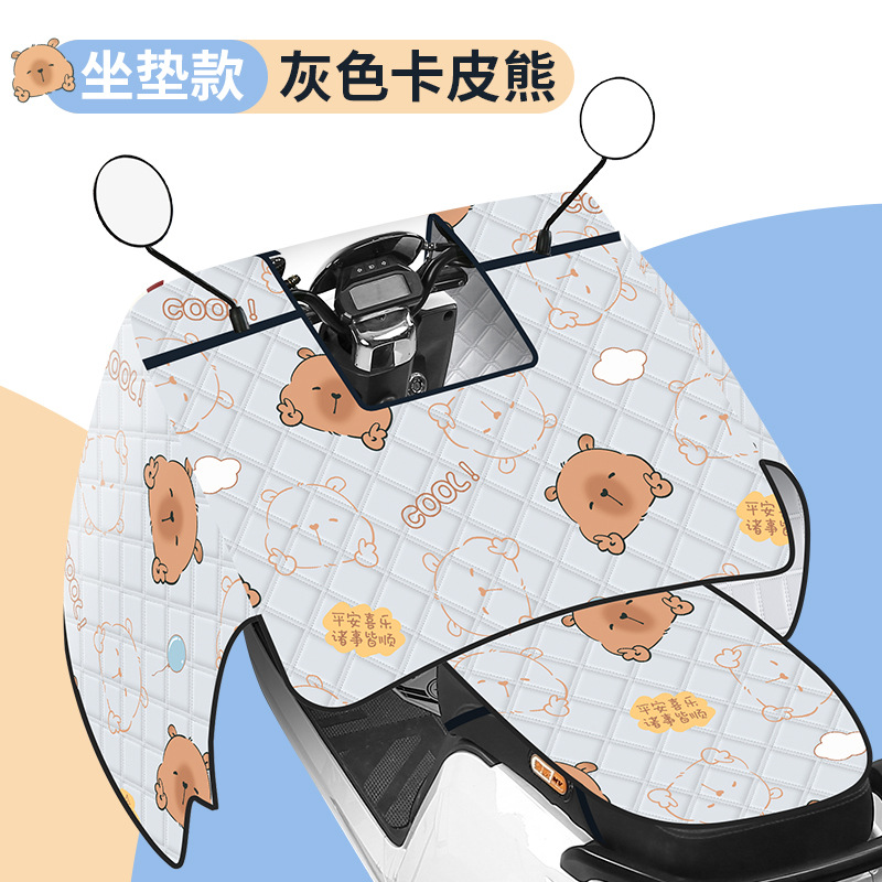 - 坐垫款【全包遮阳+双口袋+高清透明膜】灰色卡皮熊