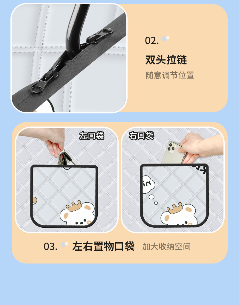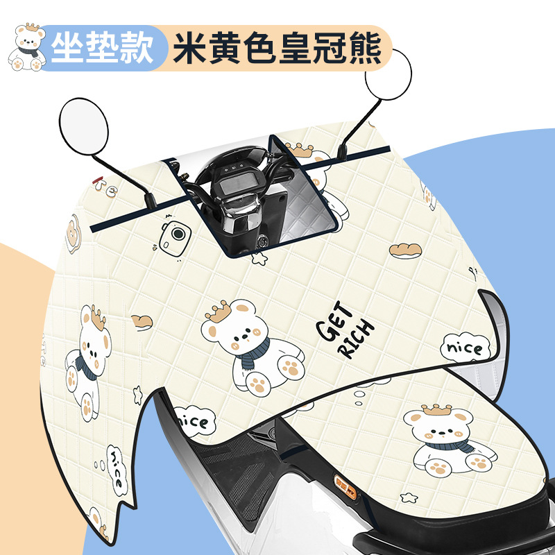 - 坐垫款【全包遮阳+双口袋+高清透明膜】米黄皇冠熊