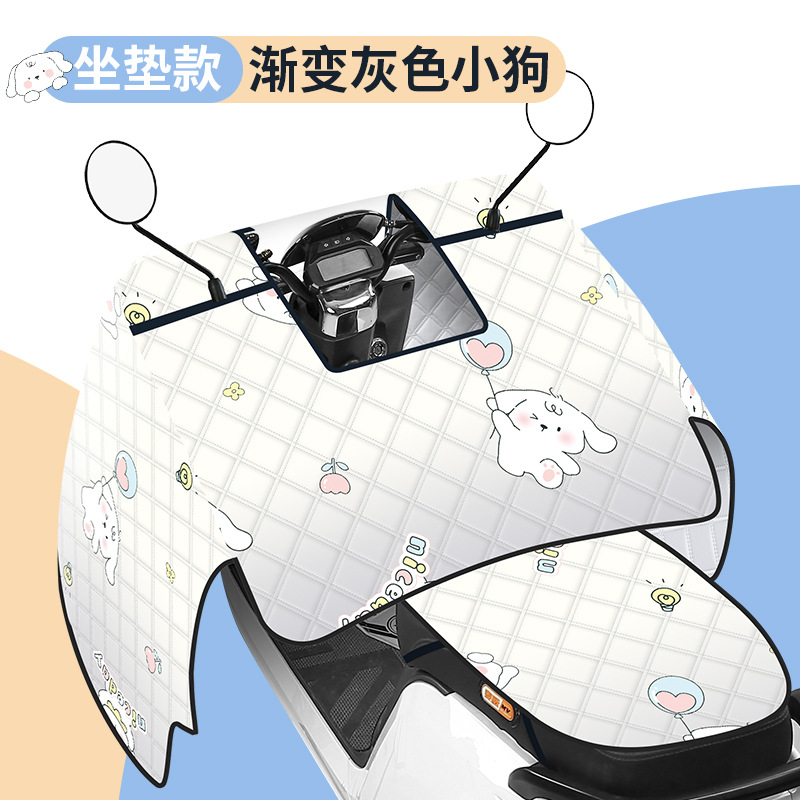 - 坐垫款【全包遮阳+双口袋+高清透明膜】渐变灰小狗