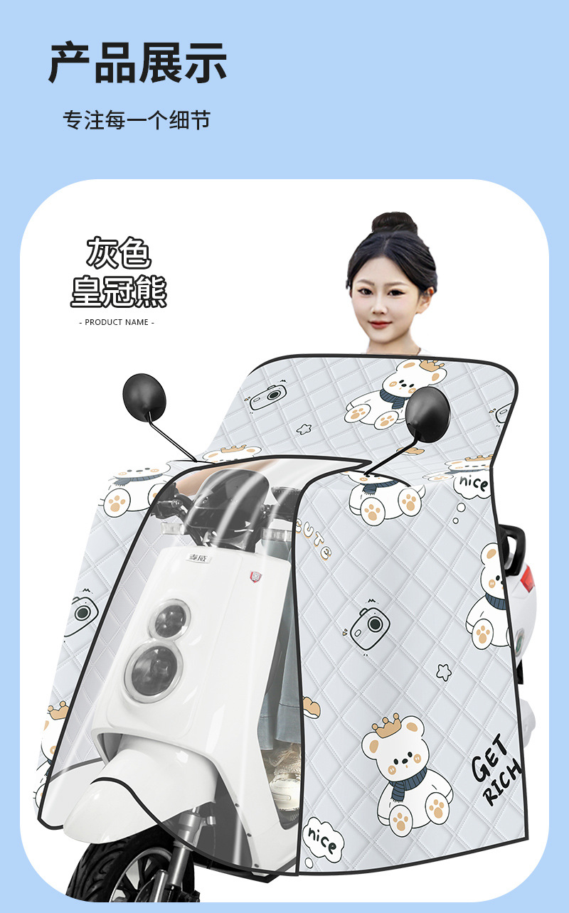- 【全包遮阳+双口袋+高清透明膜】灰色皇冠熊