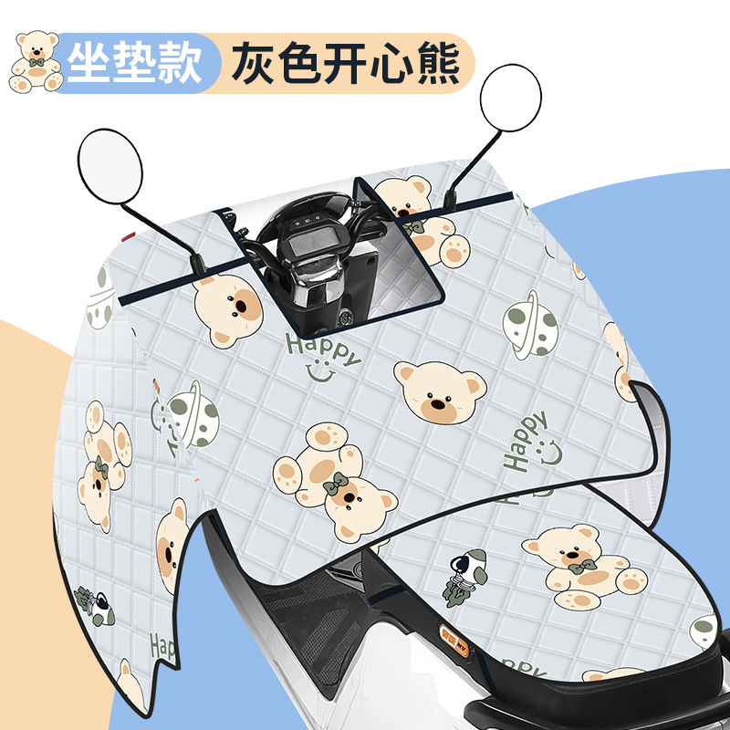 - 坐垫款【全包遮阳+双口袋+高清透明膜】灰色开心熊