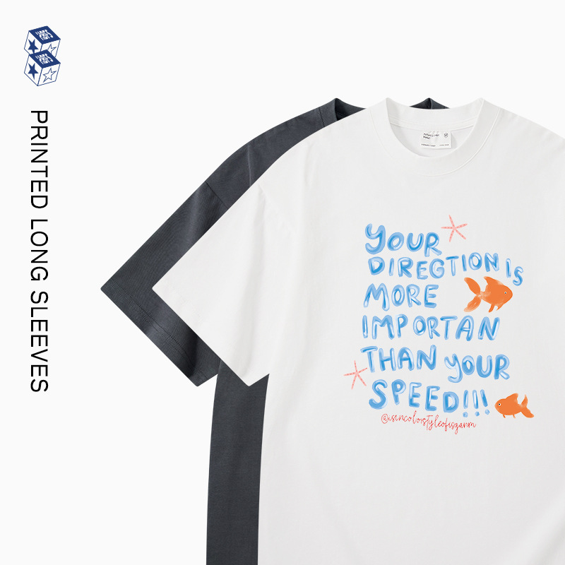 欧美宽松短袖t恤男夏季新品趣味小金鱼印花oversize圆领打底衫男
