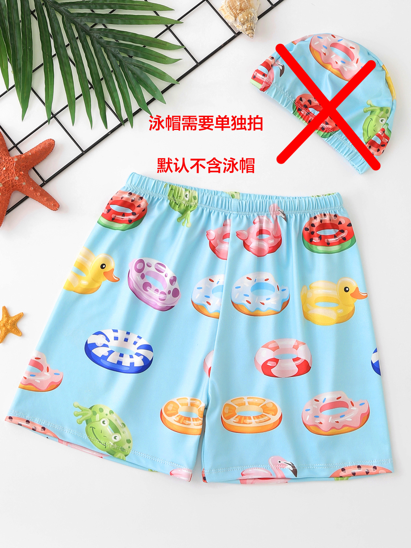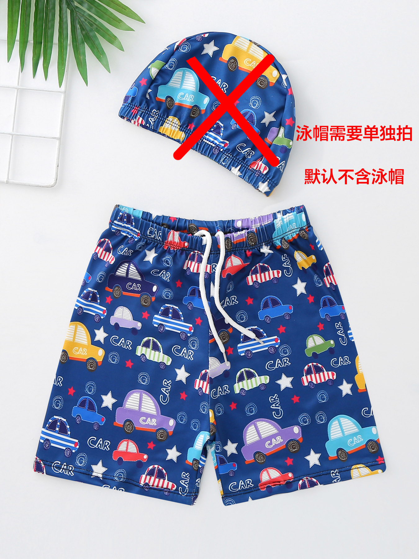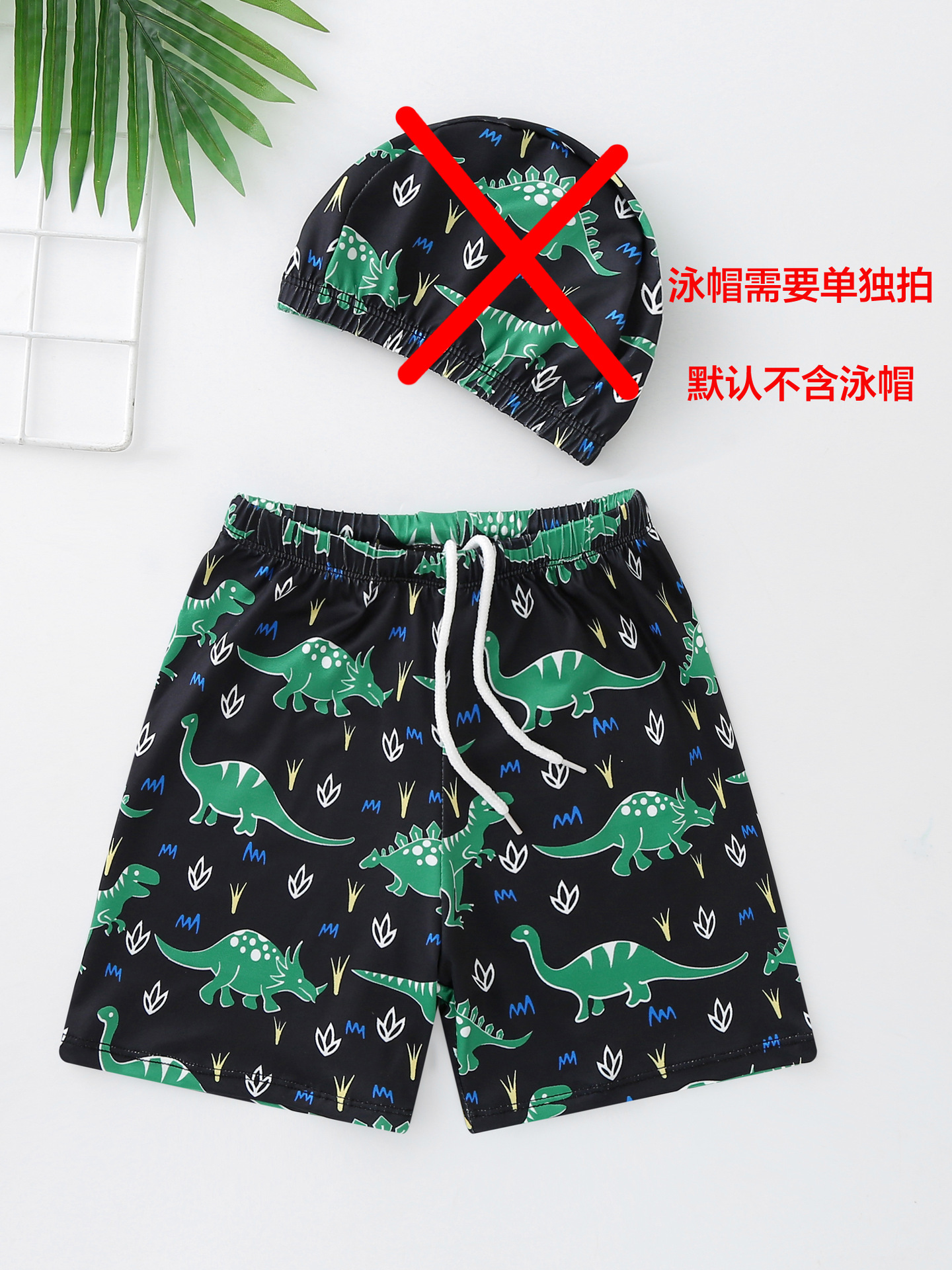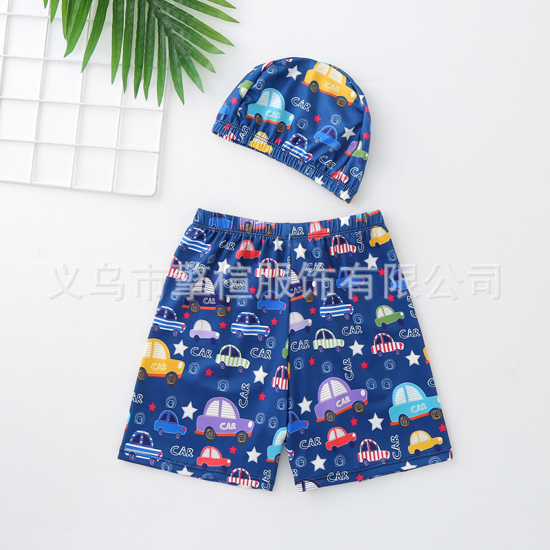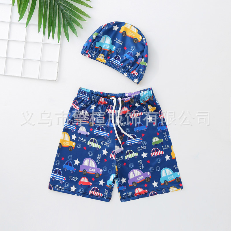 儿童泳裤宝宝卡通沙滩裤男孩平角裤泳帽游泳套装男童泳衣跨境批发