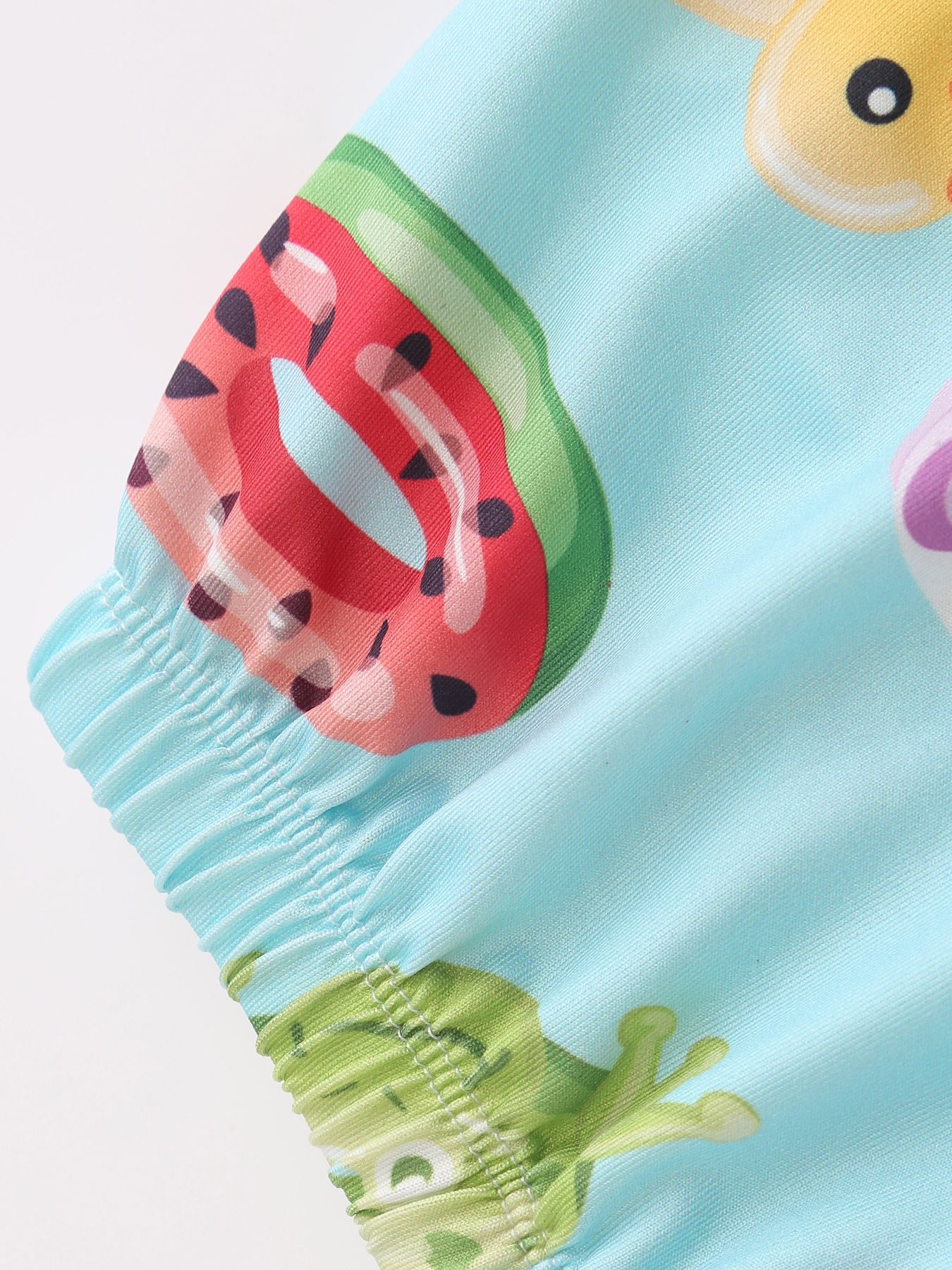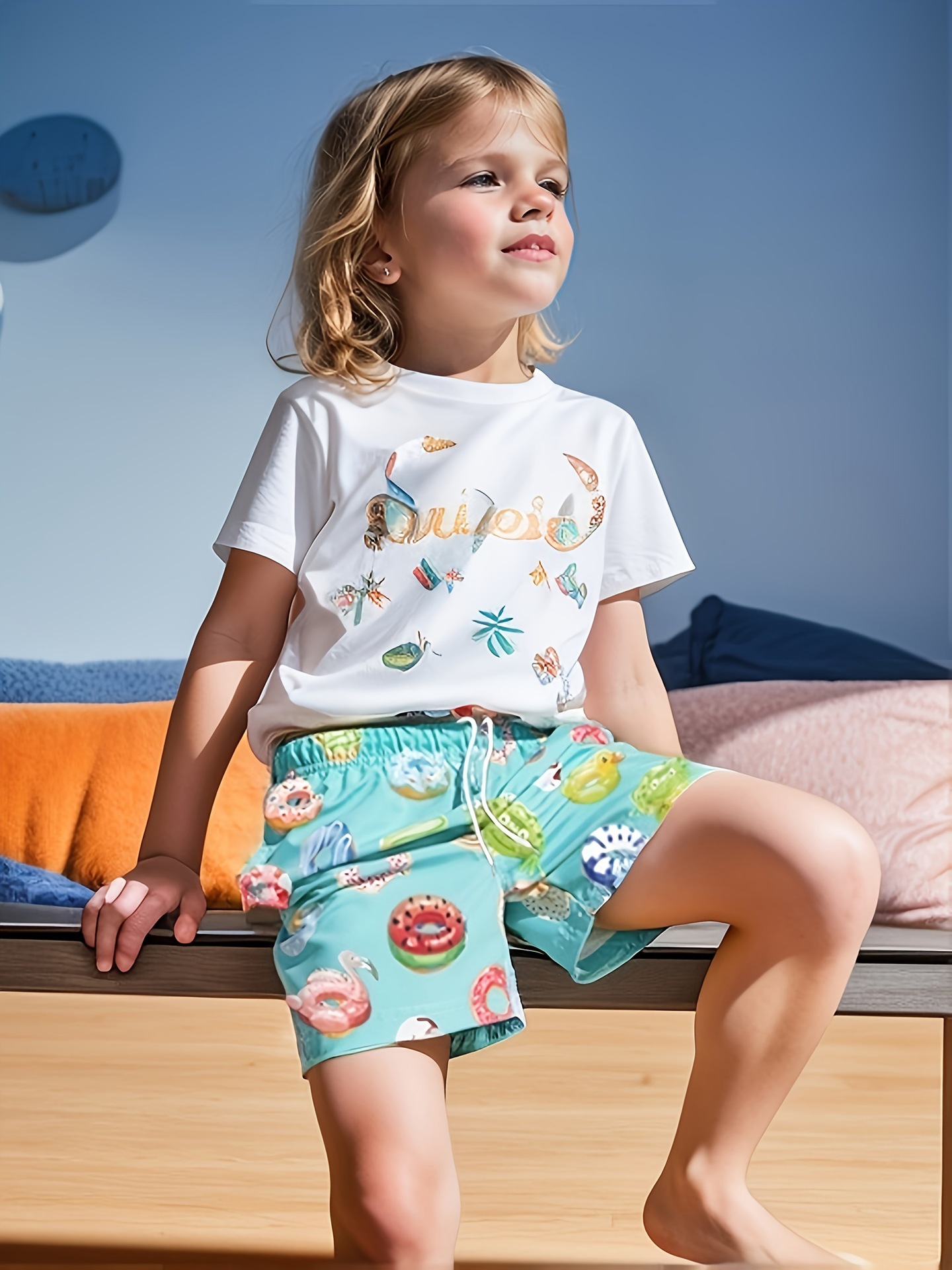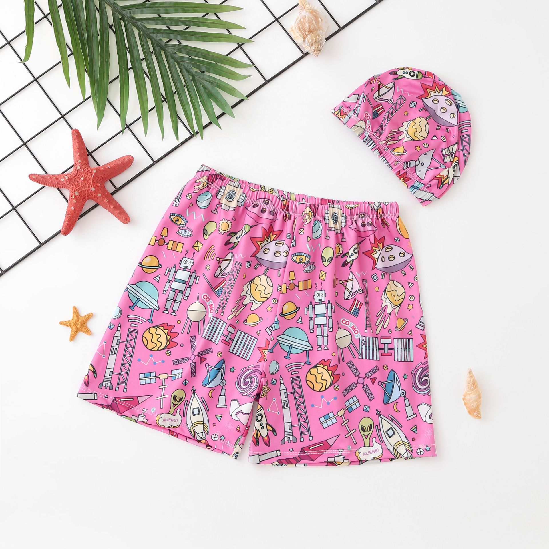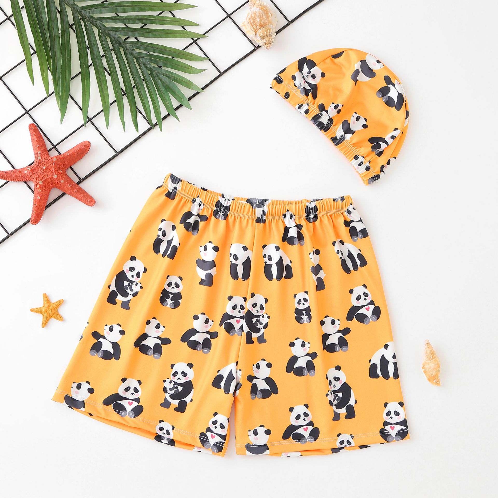 儿童泳裤宝宝卡通沙滩裤男孩平角裤泳帽游泳套装男童泳衣跨境批发