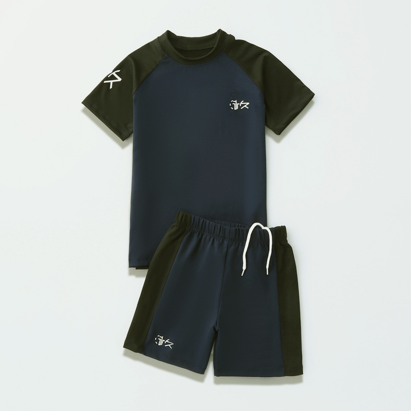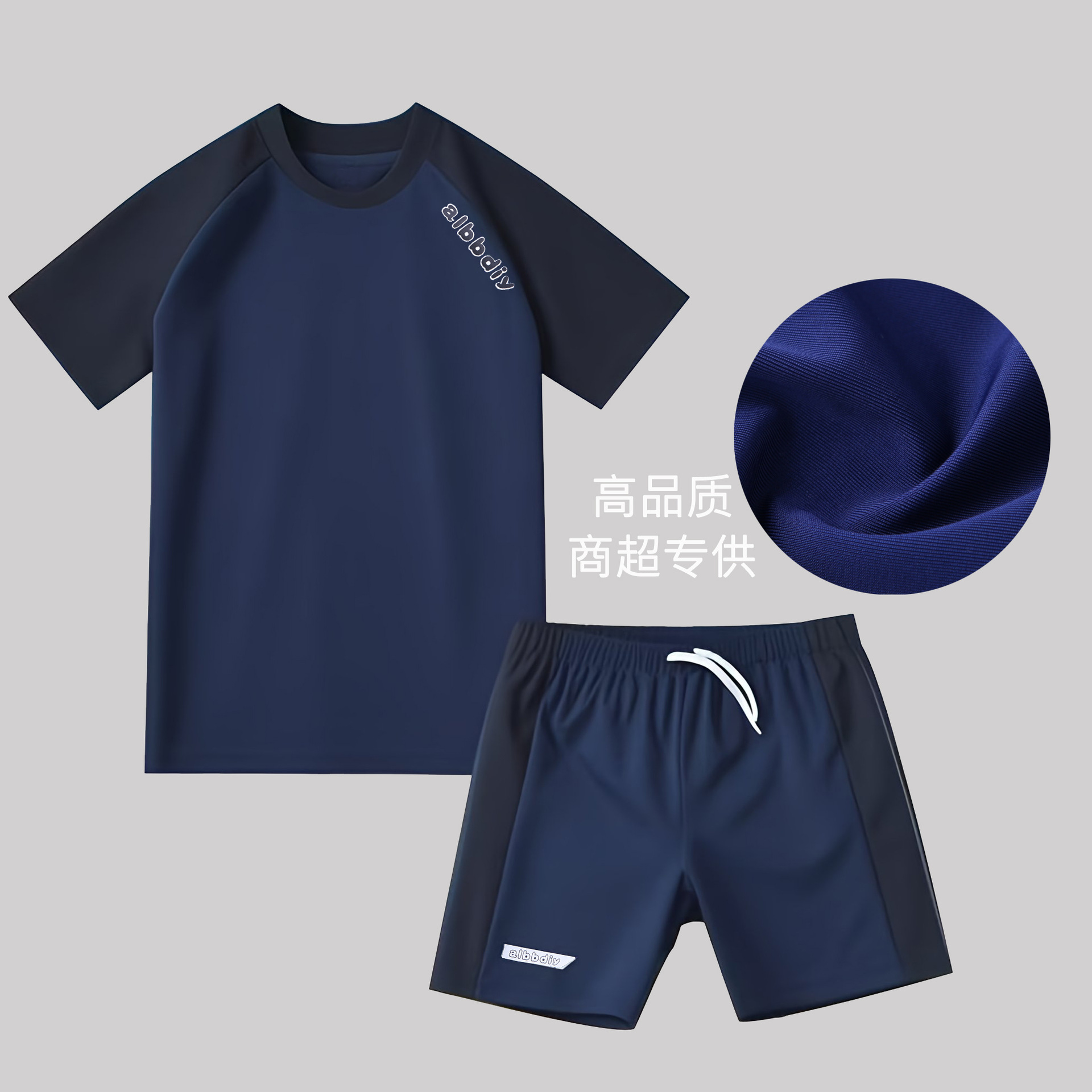 儿童泳衣男童分体2025新款中大童专业防晒训练温泉纯色男孩泳裤