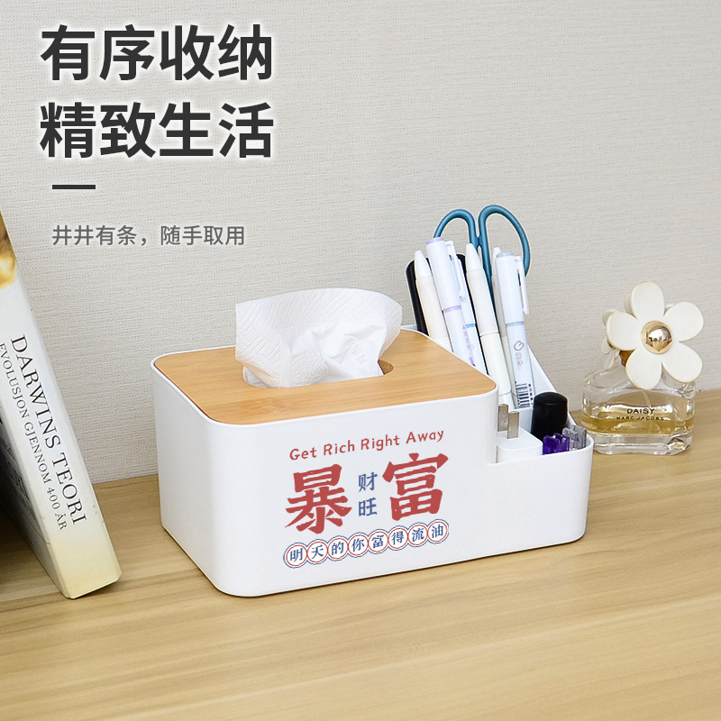 塑料办公励志竹木盖纸巾盒家用酒店纸巾盒客厅茶几创意餐巾盒