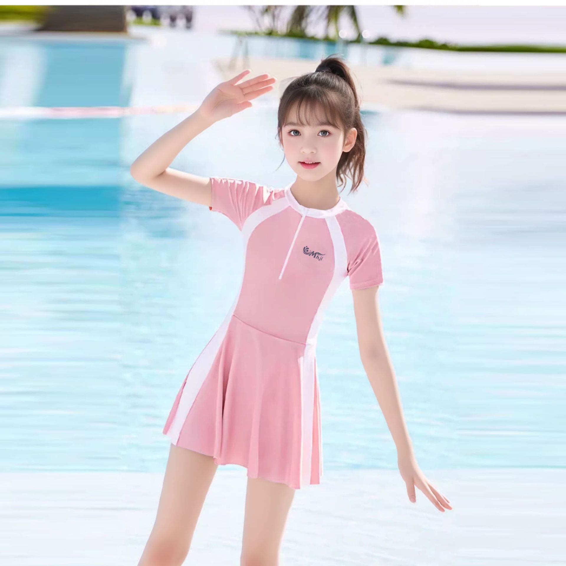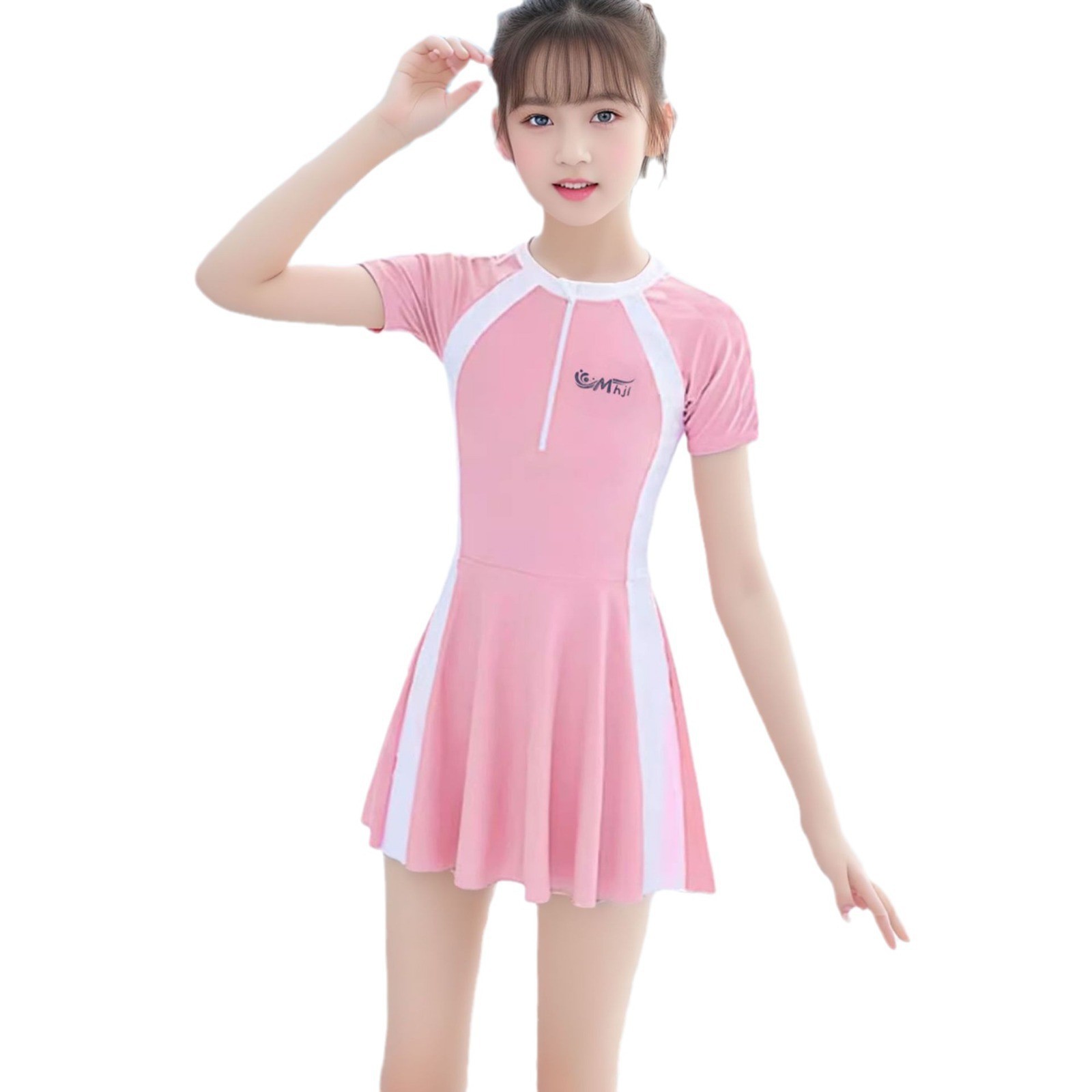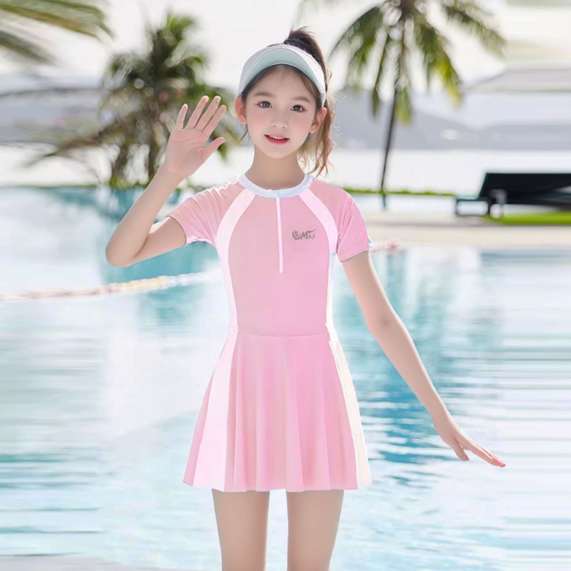 女童泳衣连体2025新款防晒速干带胸垫游泳衣中大童初中生游泳装备