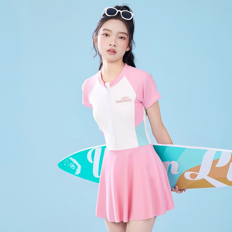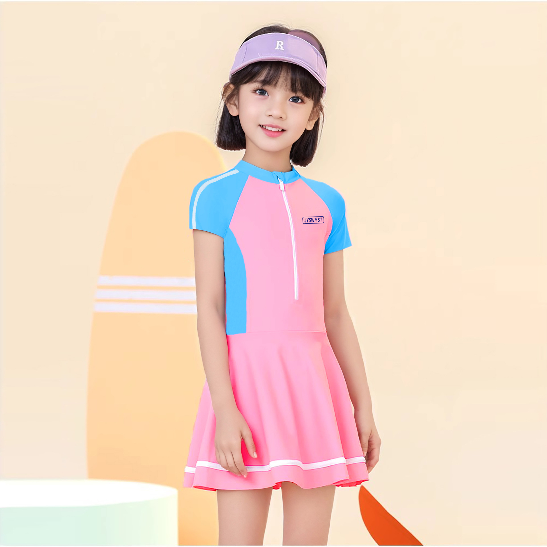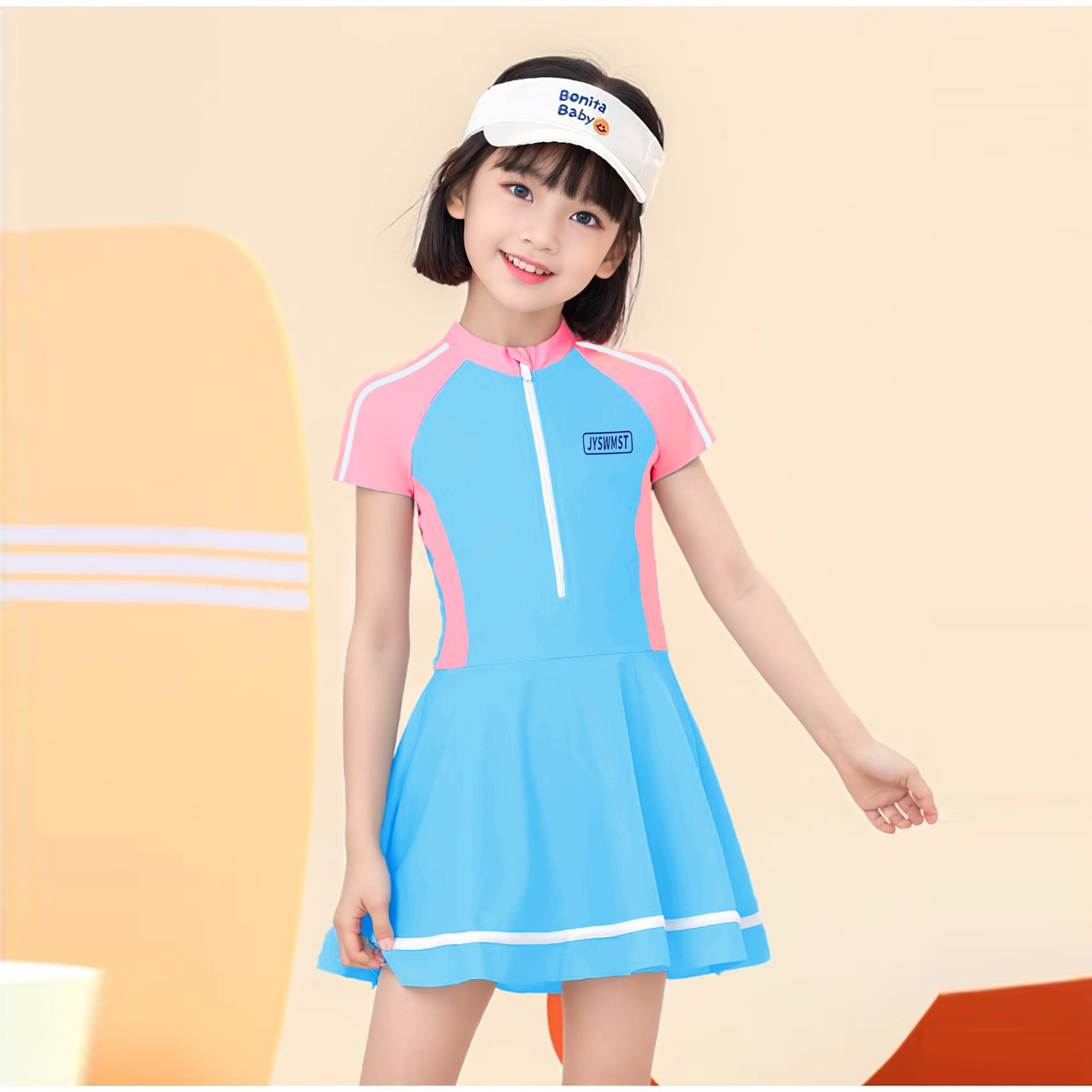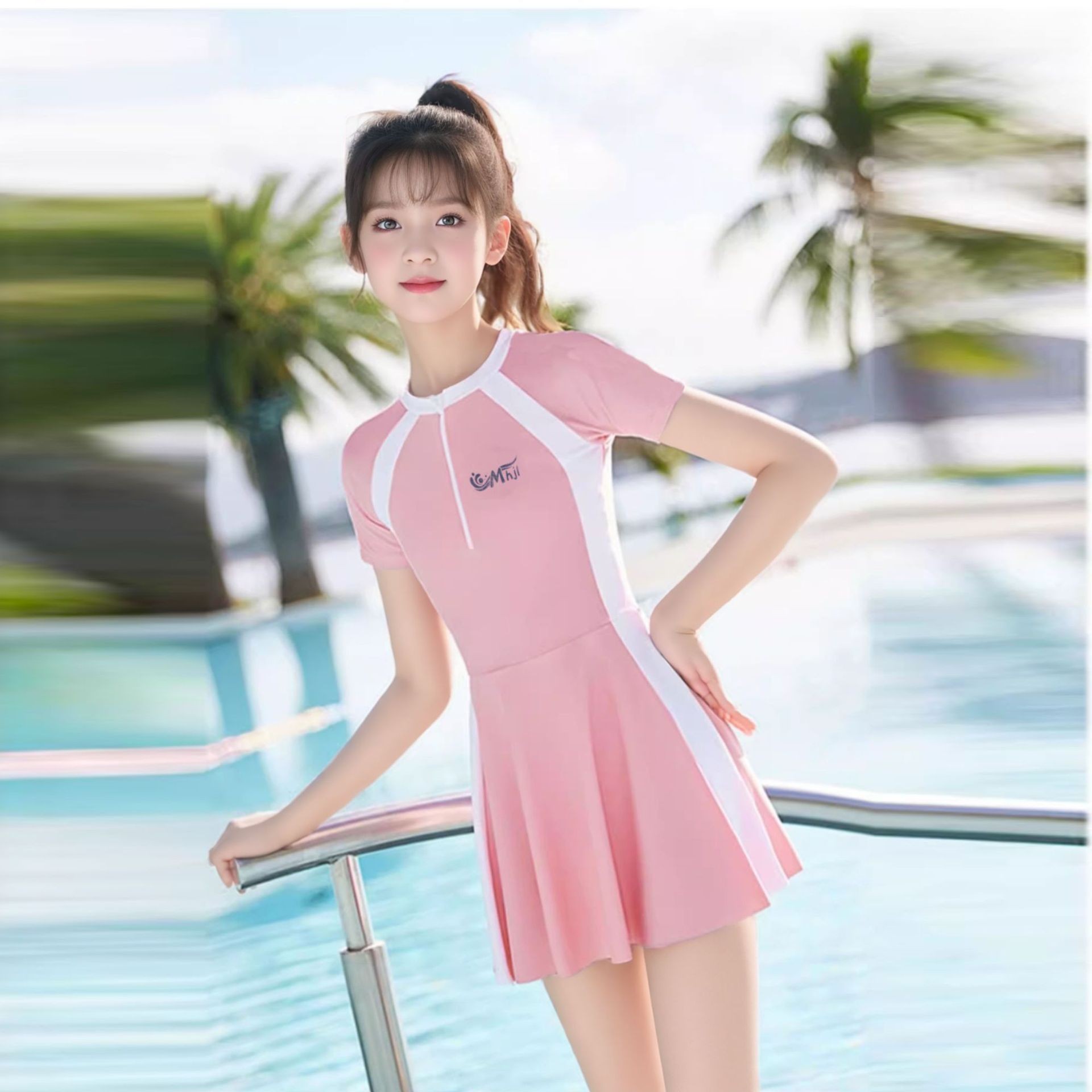 女童泳衣连体2025新款防晒速干带胸垫游泳衣中大童初中生游泳装备