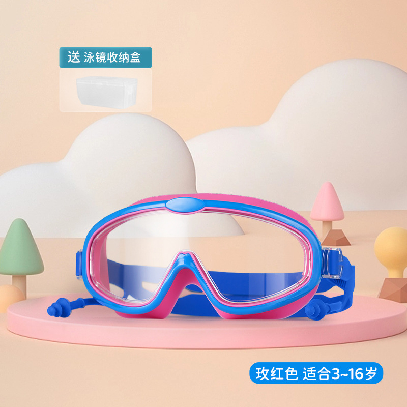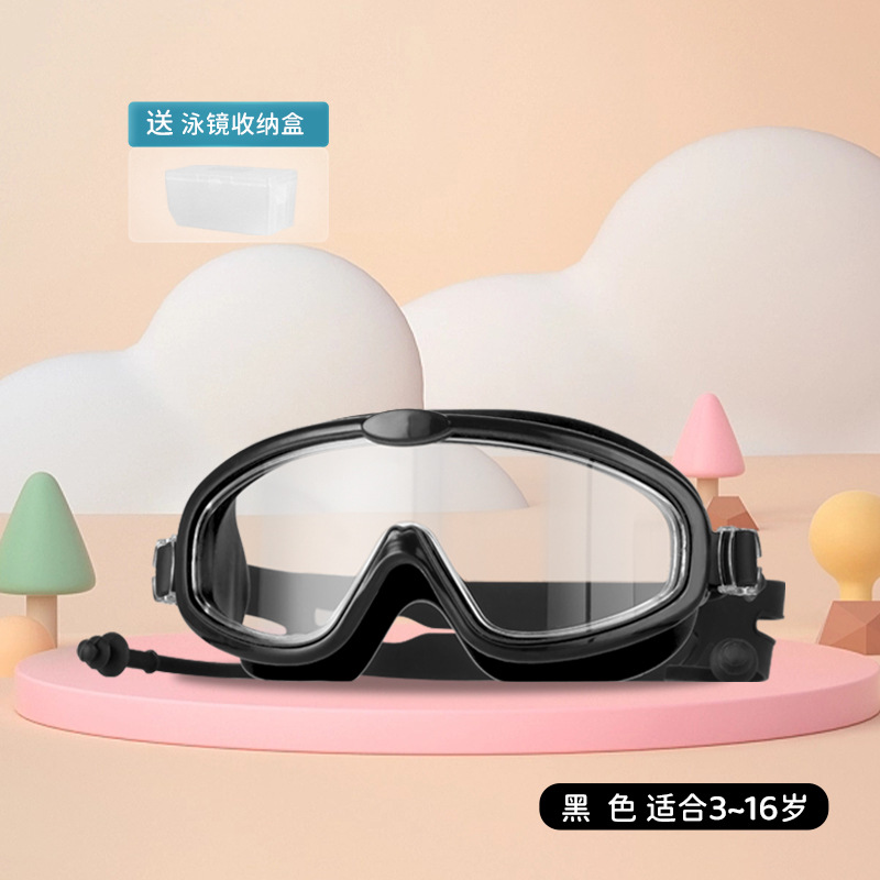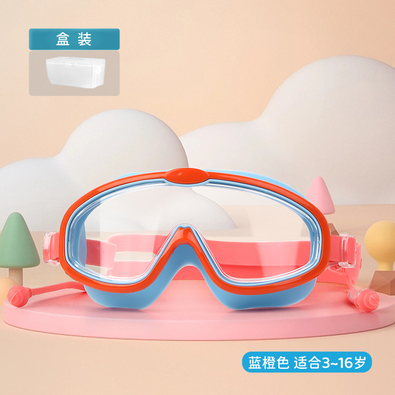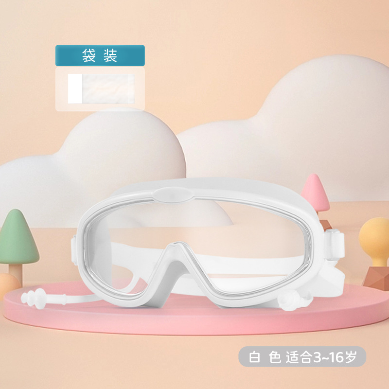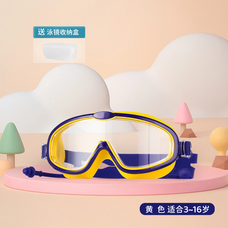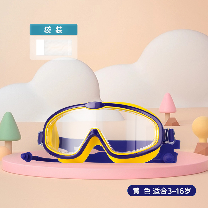 儿童大框泳镜高清防水防雾游泳眼镜连体耳塞男女童游泳镜一件代发