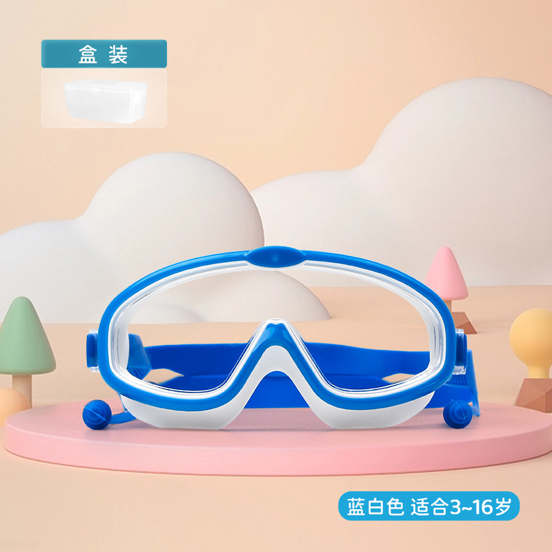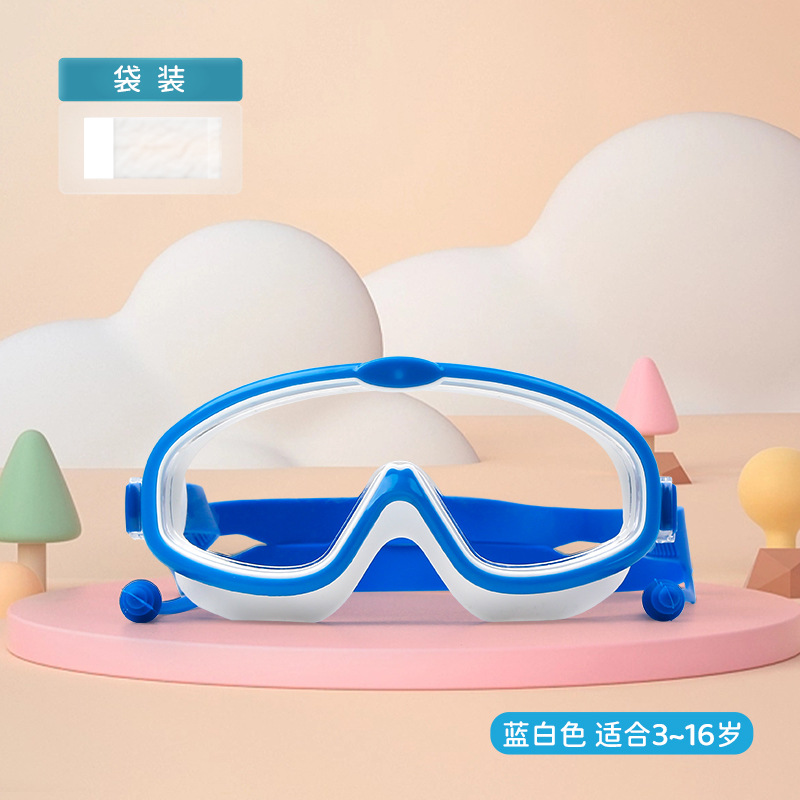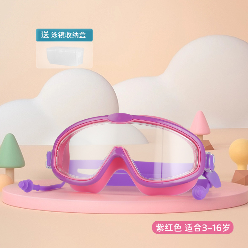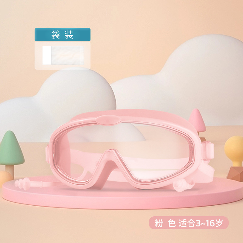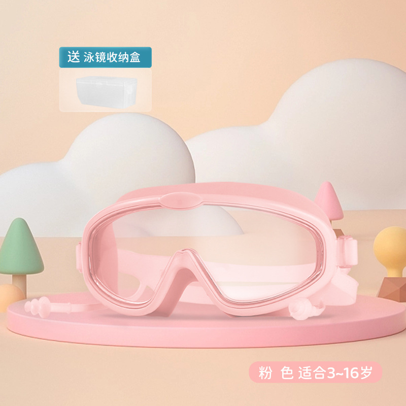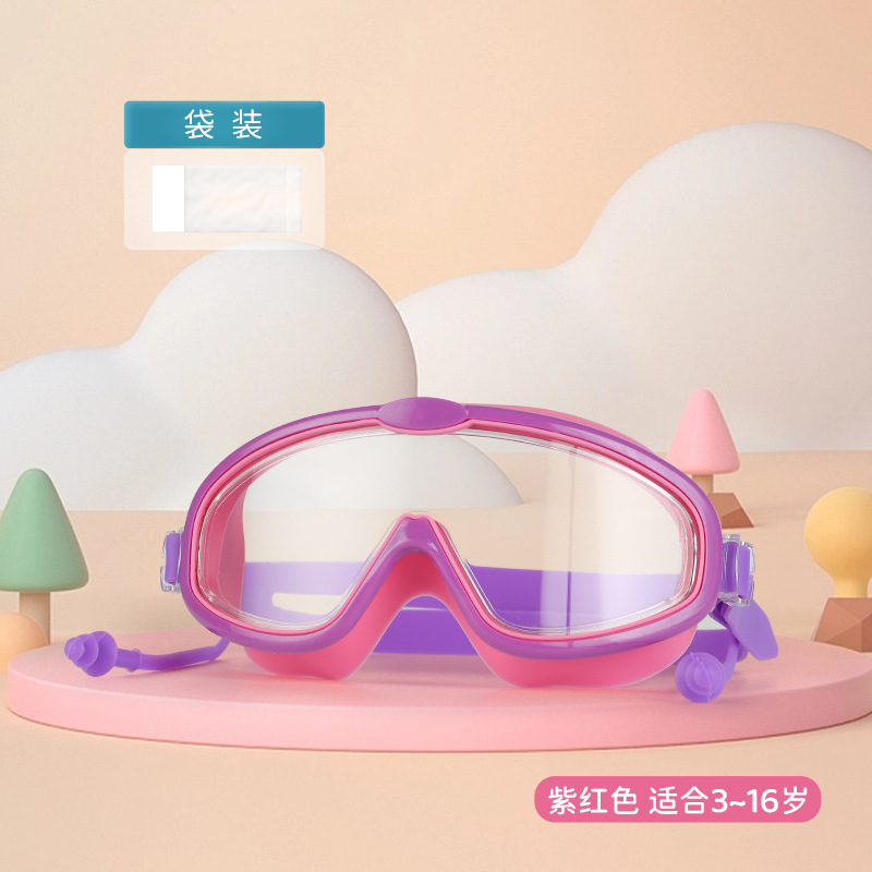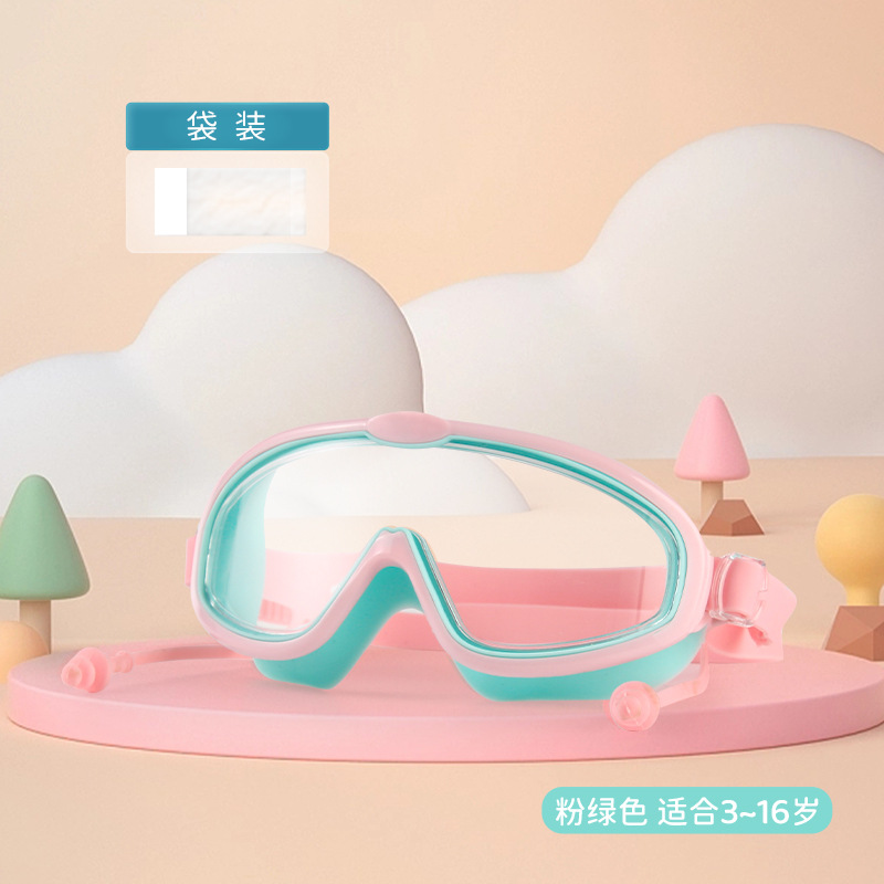 儿童大框泳镜高清防水防雾游泳眼镜连体耳塞男女童游泳镜一件代发