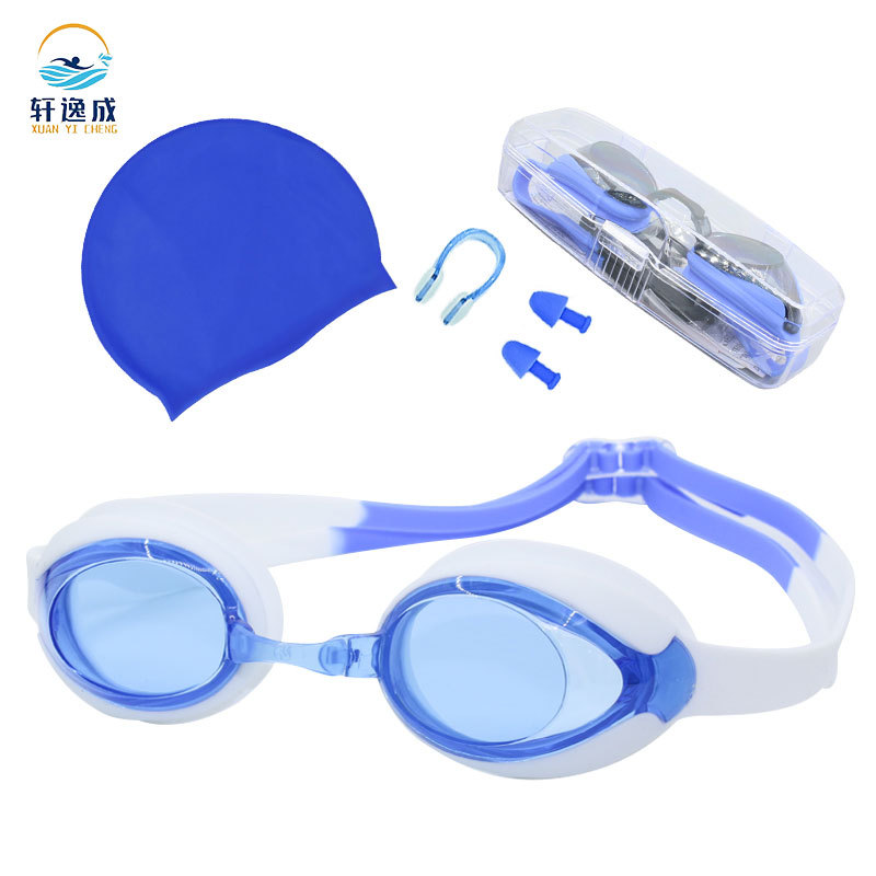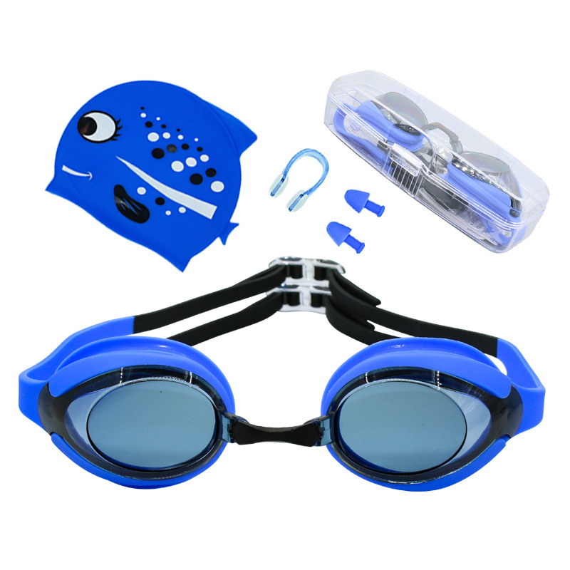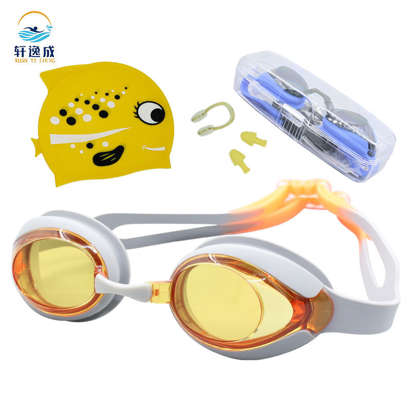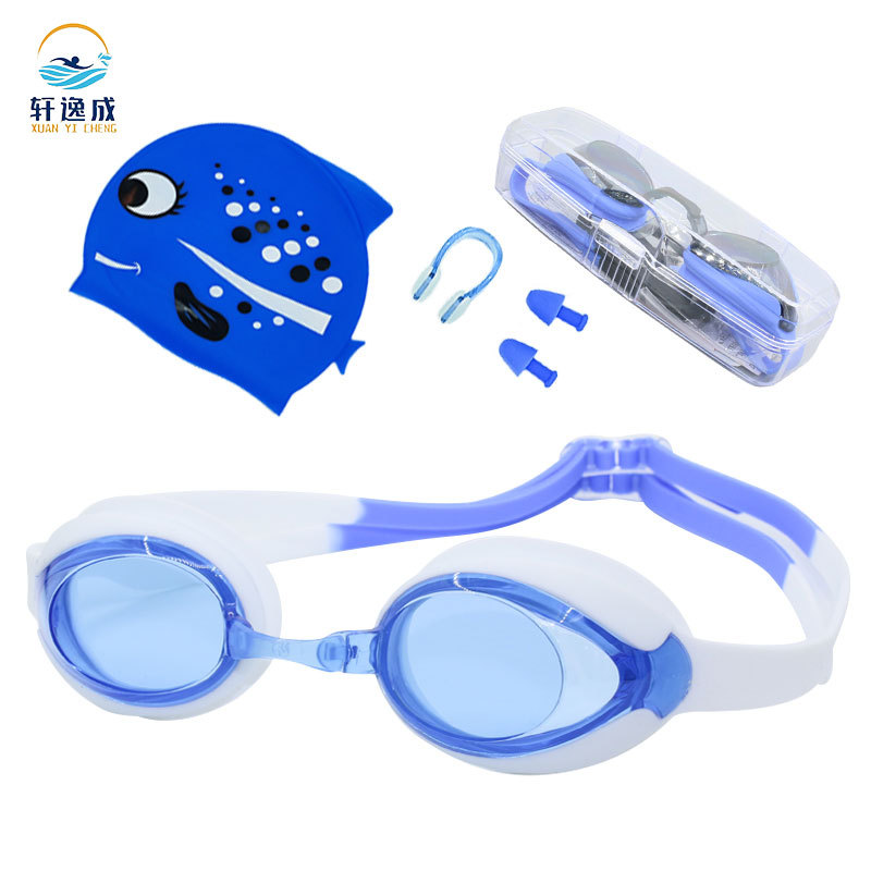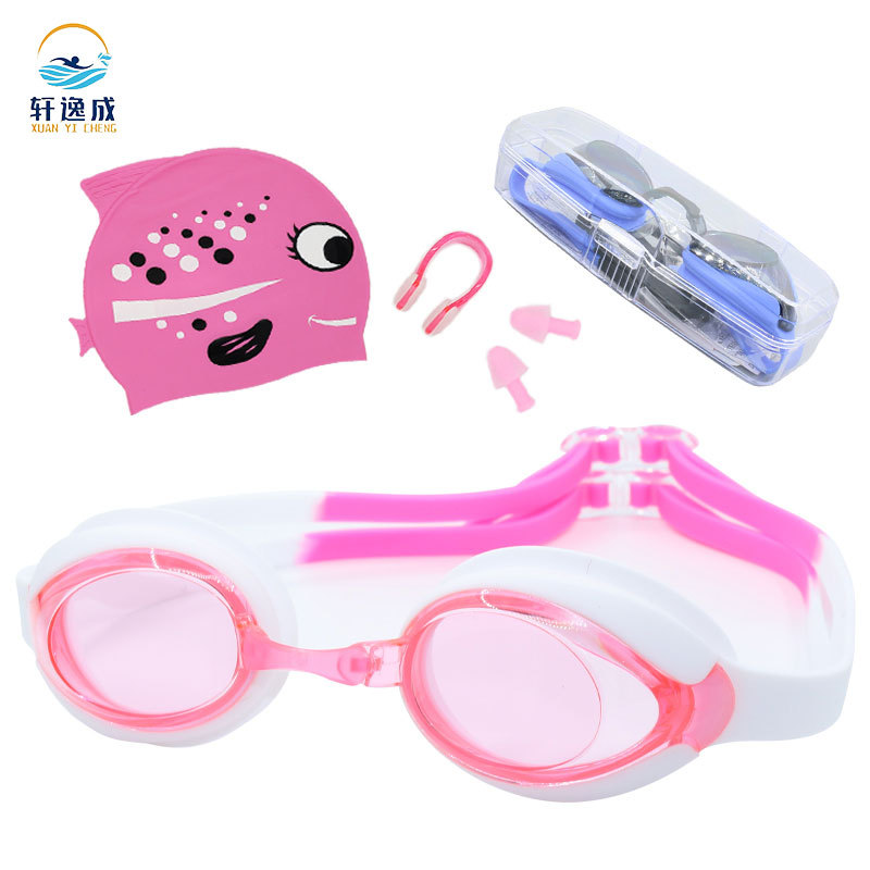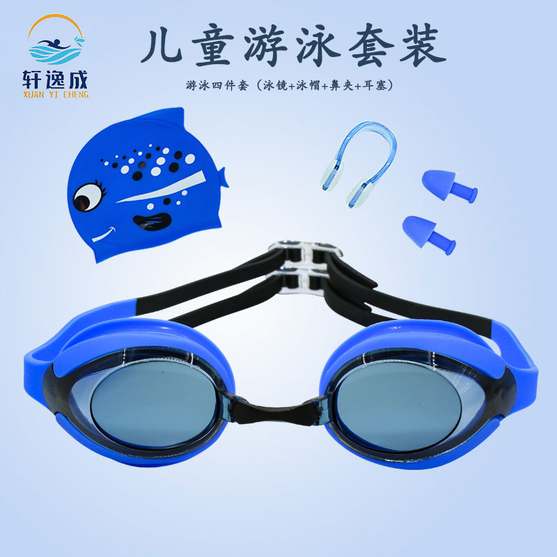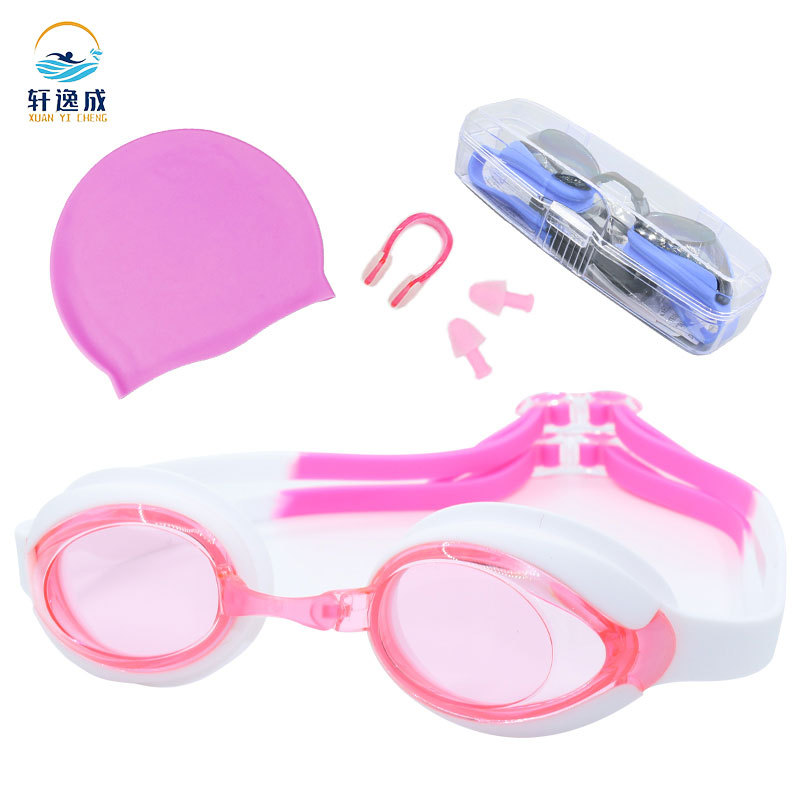 儿童泳镜泳帽套装 高清防水防雾泳镜鼻夹耳塞套装印LOGO 泳帽批发