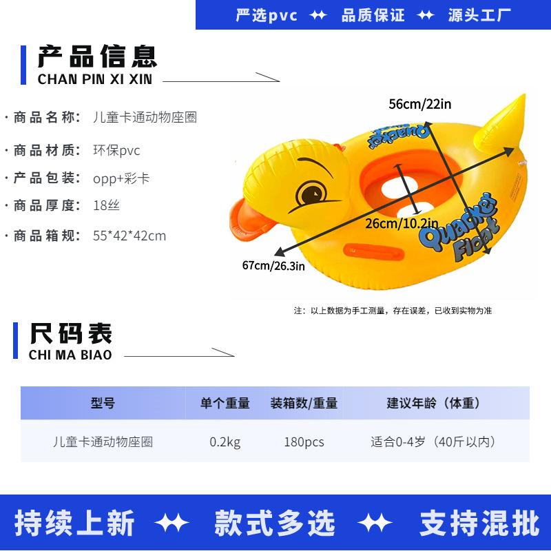 水上坐圈儿童游泳圈座圈动物图案17款图案任意挑选0-5岁宝宝座圈