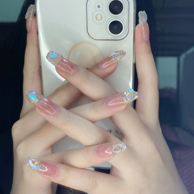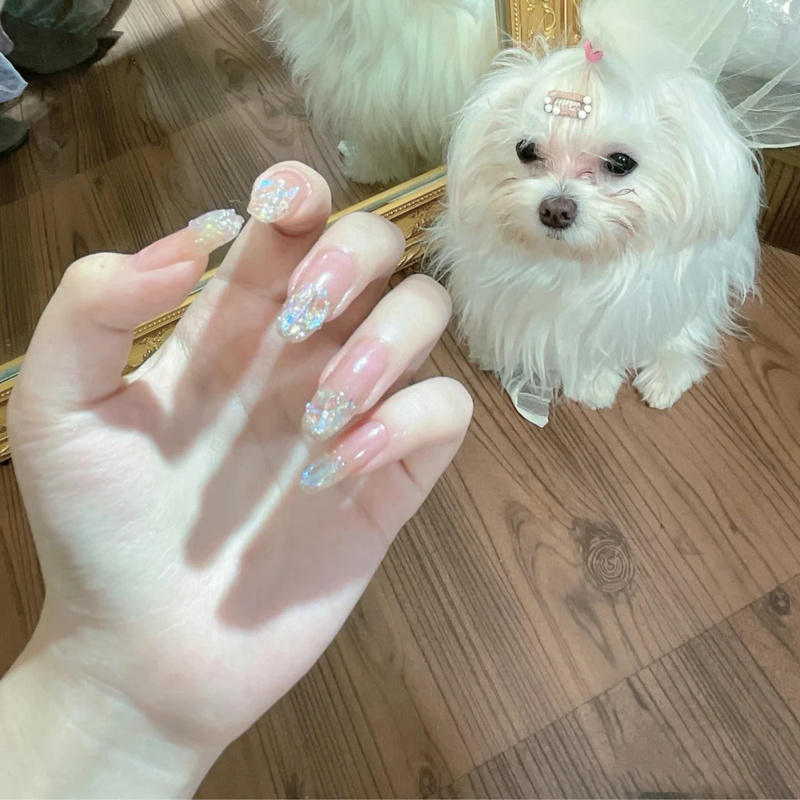 温精灵同款手工穿戴甲秋冬新娘透裸色美甲成品贴片高级定制甲片