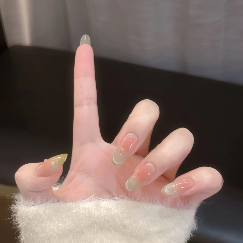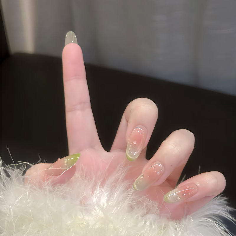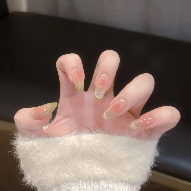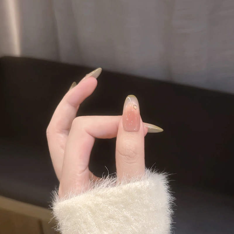 春夏新款芭乐腮红绿色清新法式猫眼穿戴甲纯欲显白新娘温柔婚甲贴