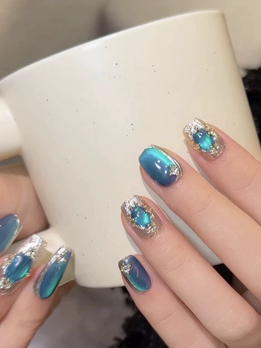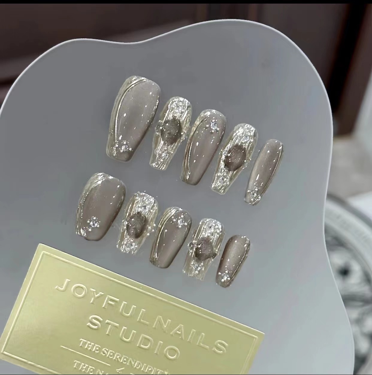 「布契拉提」纯手工穿戴甲高级感粉紫猫眼爆闪温柔显白新春美甲贴