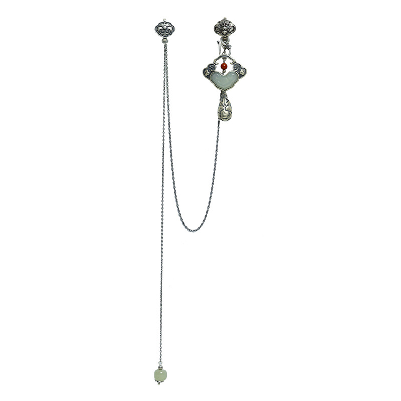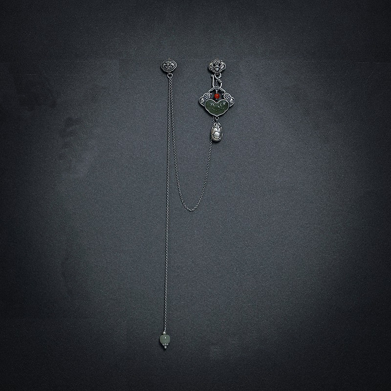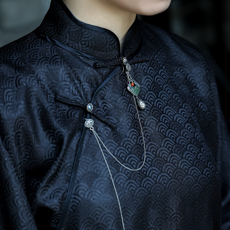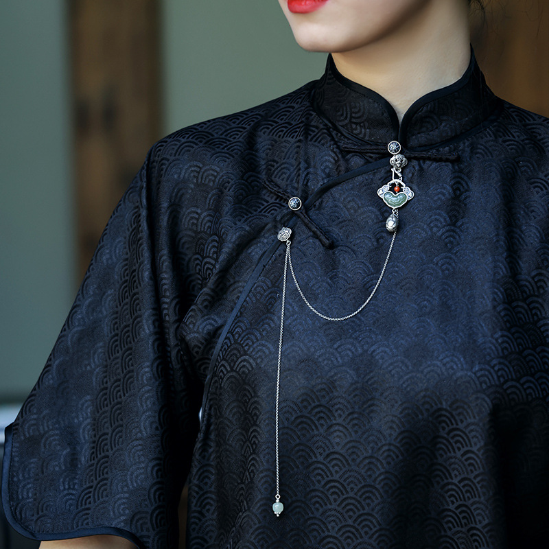 称心如意宫廷风压襟挂件铜镀银仿和田玉旗袍流苏挂坠汉服胸针配饰