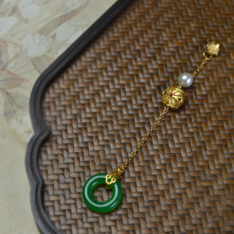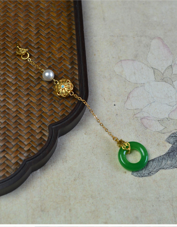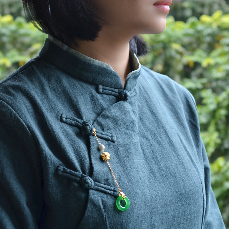 原创翡翠压襟扣挂件玉坠复古百搭中式旗袍汉服茶服胸针配饰品女