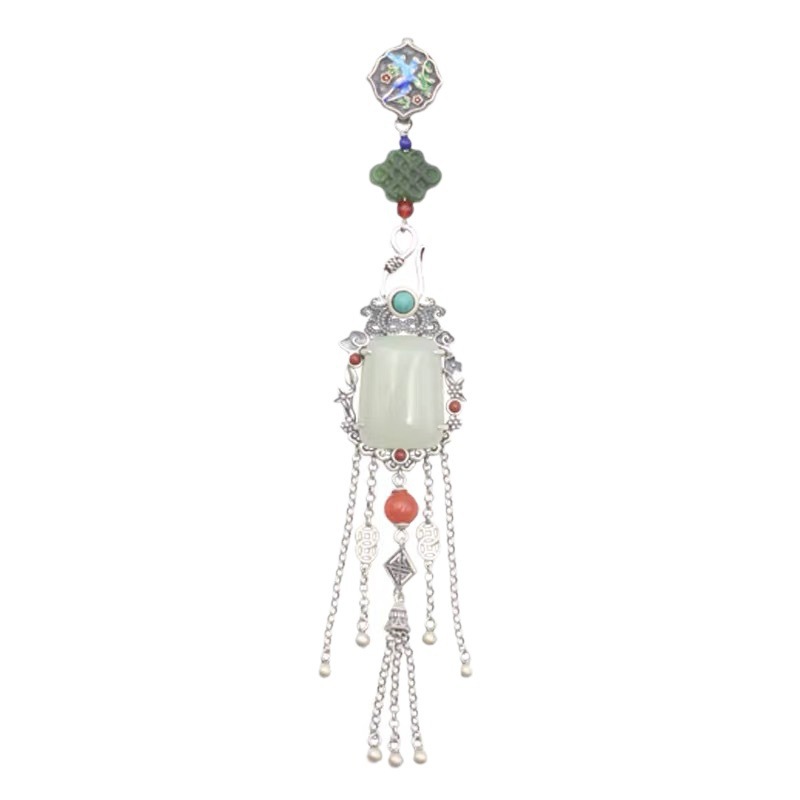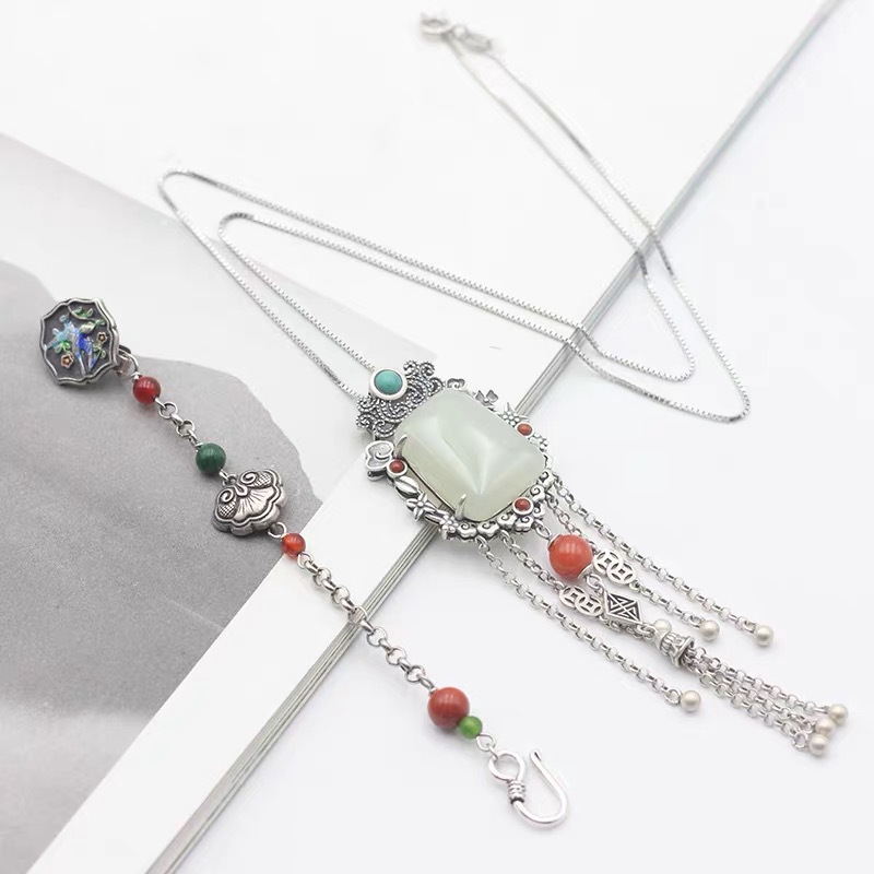 如梦令中式复古仿S925纯银和田汉服旗袍压襟挂件复古吊坠项链