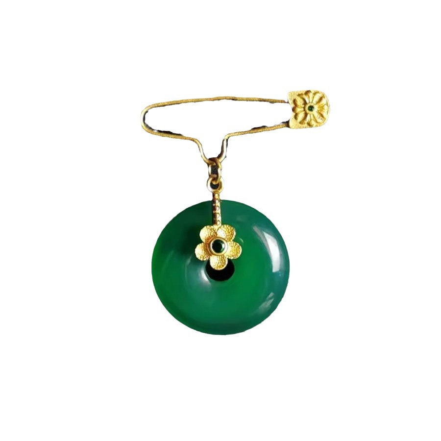 全新国潮旗袍原创古典平安扣简约新中式领花绿色别针