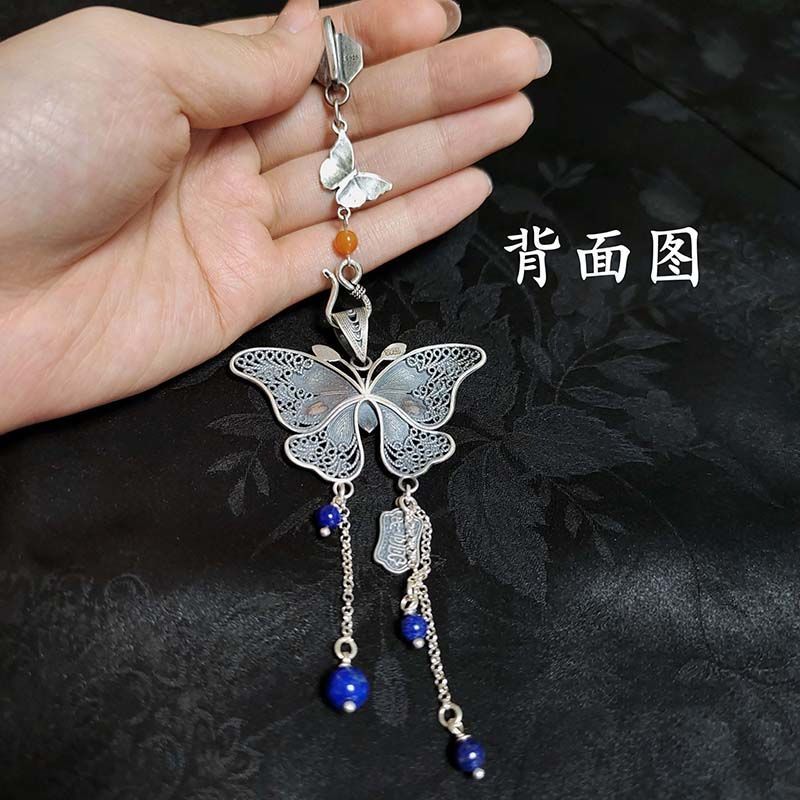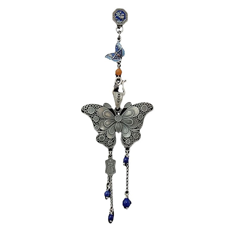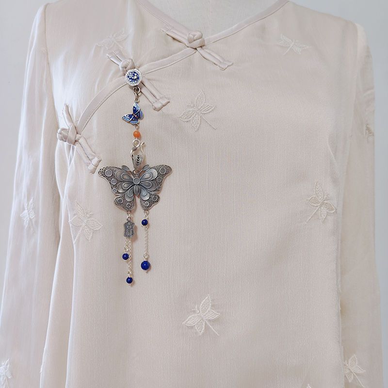 中式古典蝴蝶流苏压襟旗袍斜襟挂件汉服茶服配饰镀银胸针古风饰品
