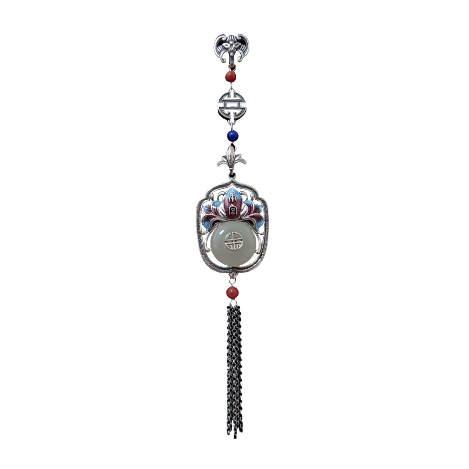 【南宫莲玉】原创古风和田玉纯银旗袍压襟扣莲花流苏挂件汉服配饰