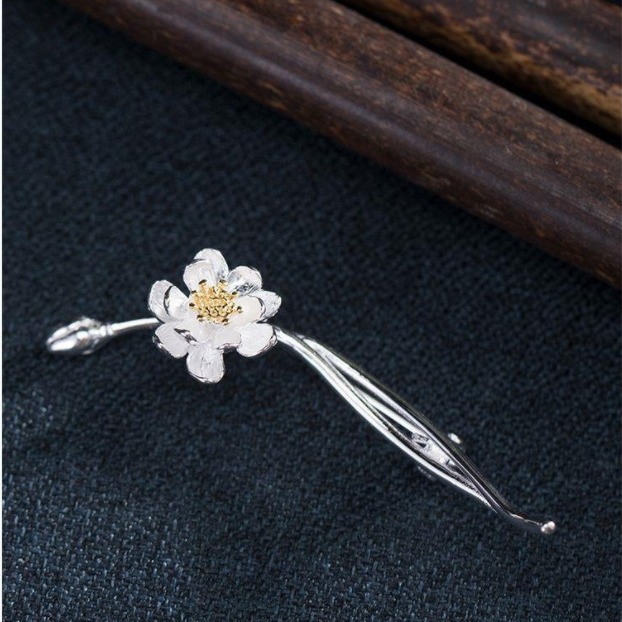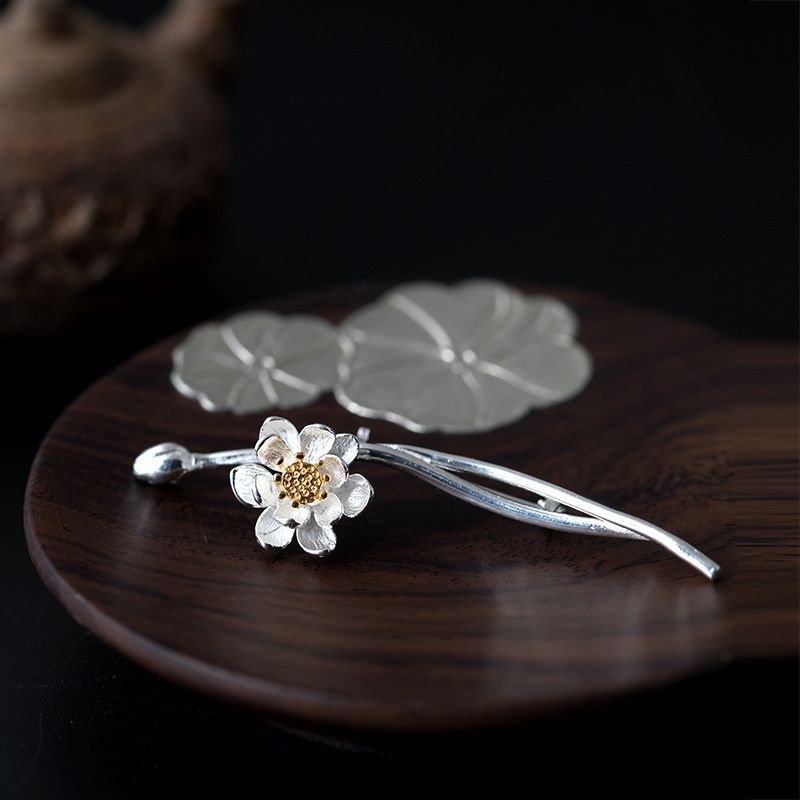 一朵芙蕖 s925银荷花胸针古典中国风旗袍配饰生日礼物别针花朵