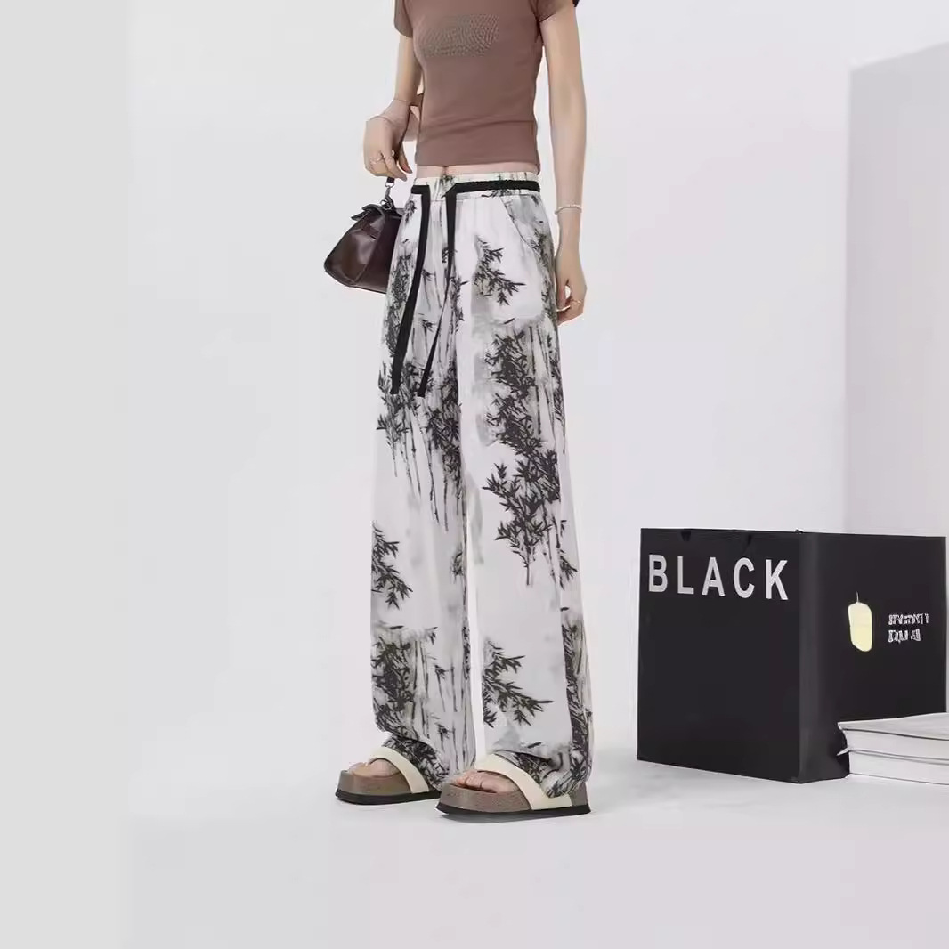 冰丝阔腿裤女夏薄款新款新中式水墨裤国风仙女凉凉雪纺防晒裤