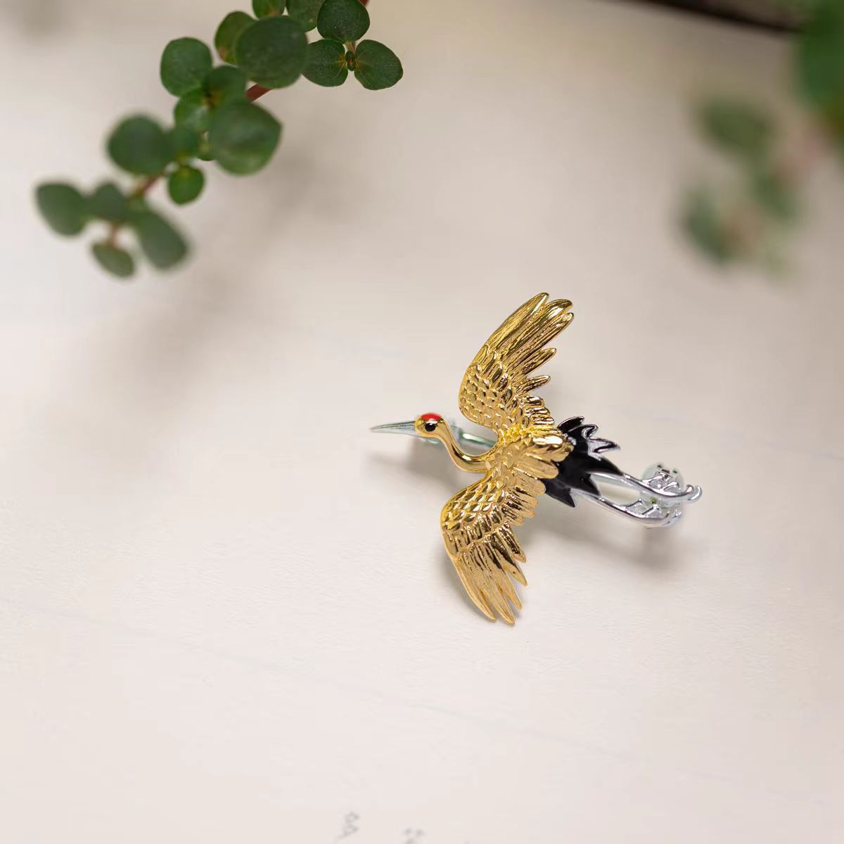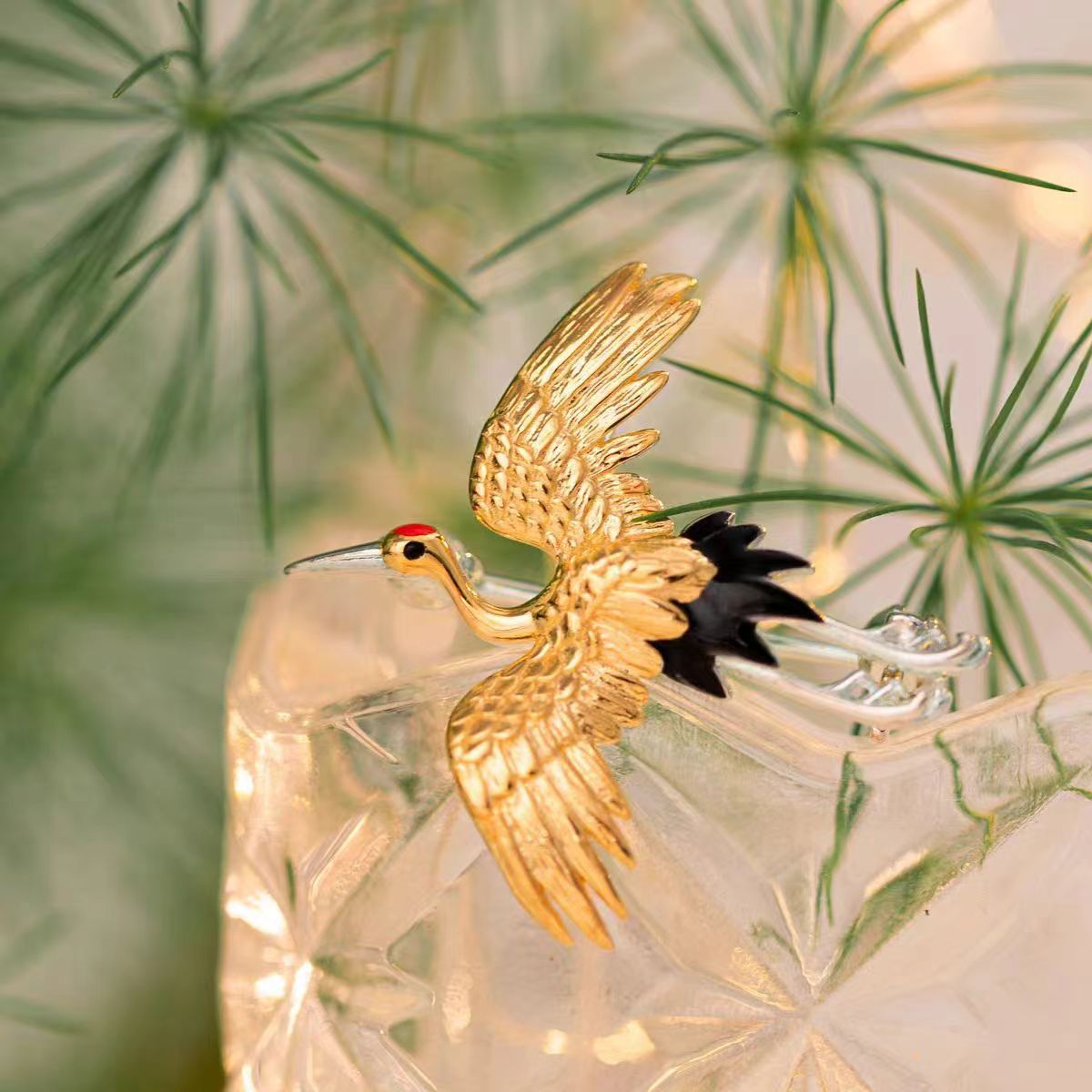新款百搭高级感云中鹤行复古国潮珐琅彩仙鹤胸针胸花
