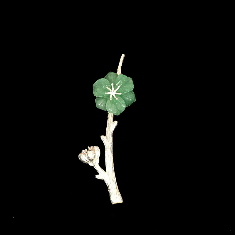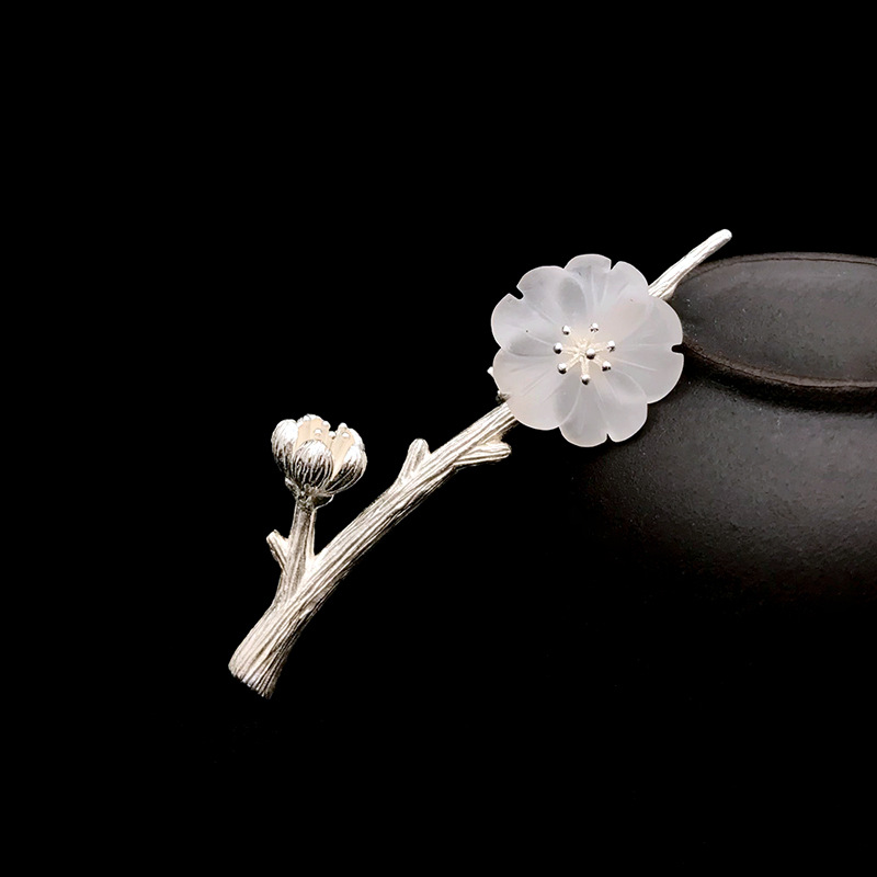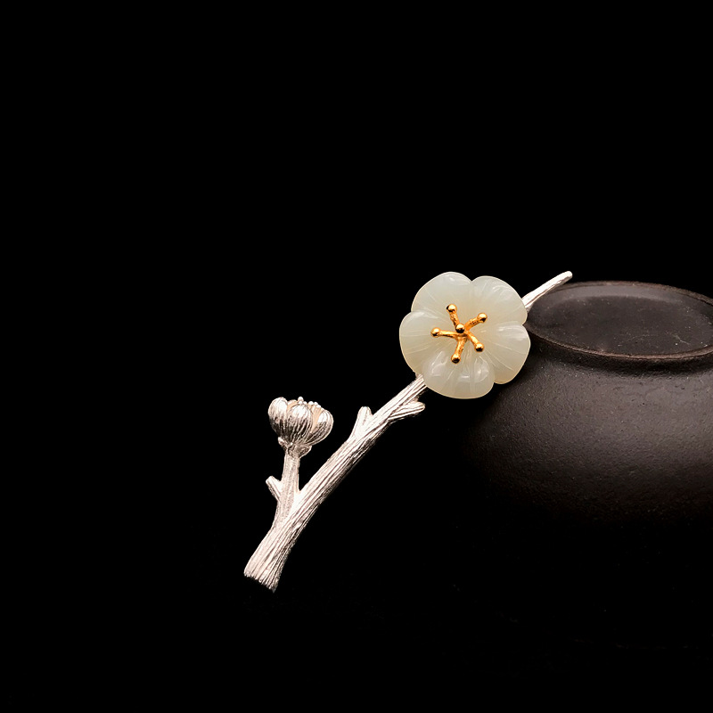 复古宫廷国风水晶梅花别针百搭宝石和田玉925纯银胸针女大气轻奢