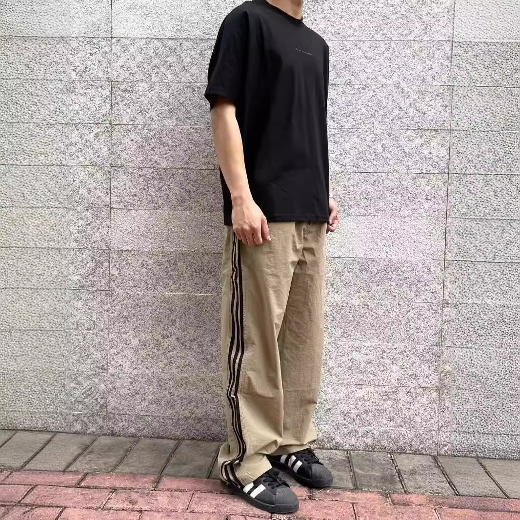 美式机能冲锋裤男士夏季薄款高街复古撞色条纹设计感直筒宽松休闲