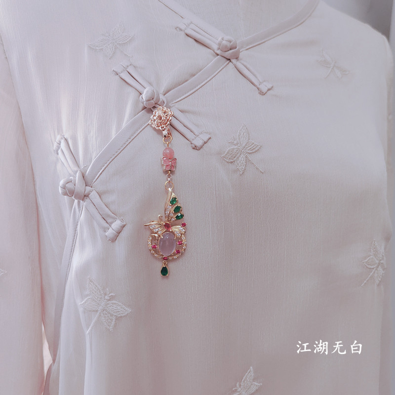 【化蝶】原创古典中国风旗袍压襟天然玉髓挂件坠汉服茶服配饰